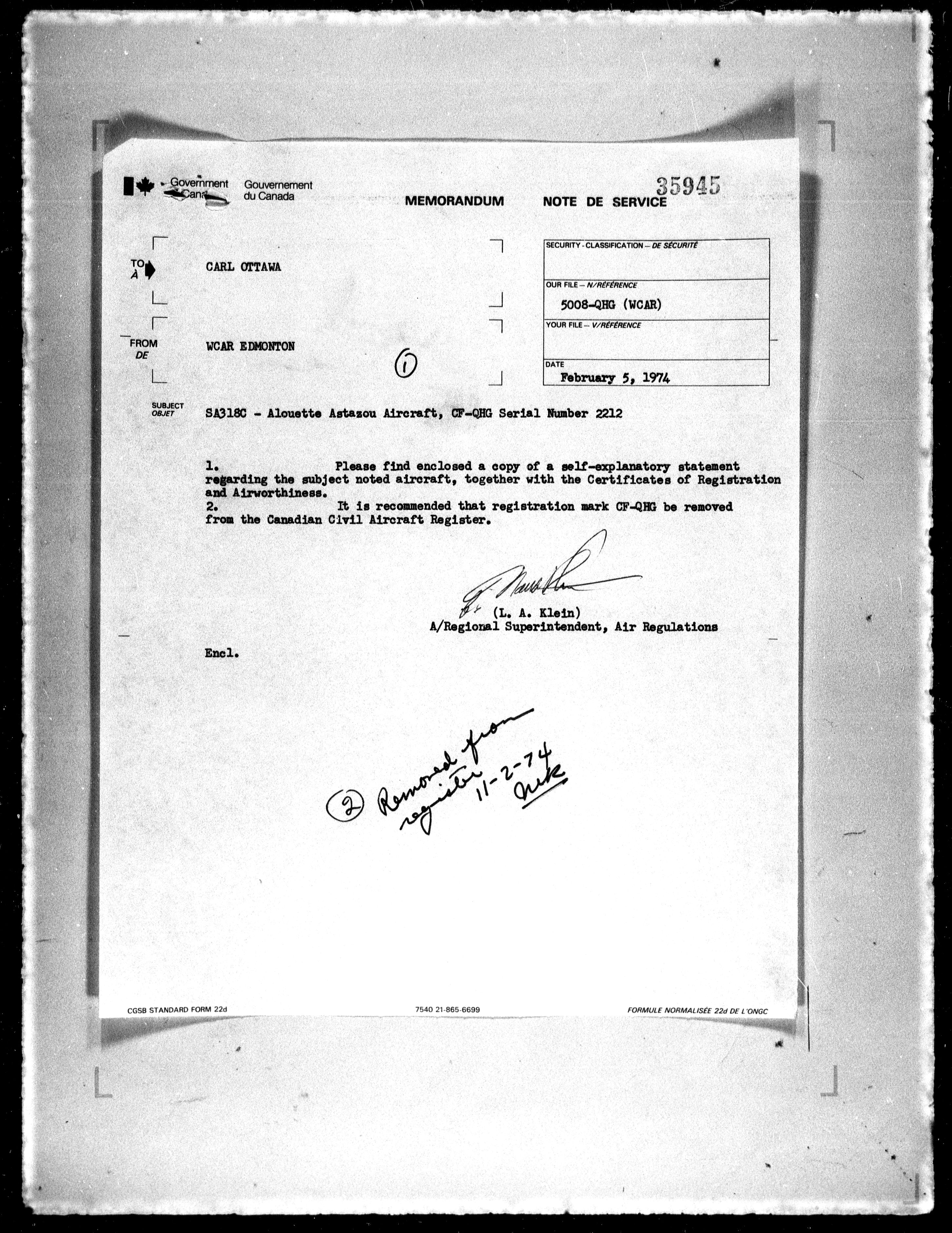 Department of Transport : Civil aircraft registration, inspection and operation files, block 5008, 1920-1986 - 7824