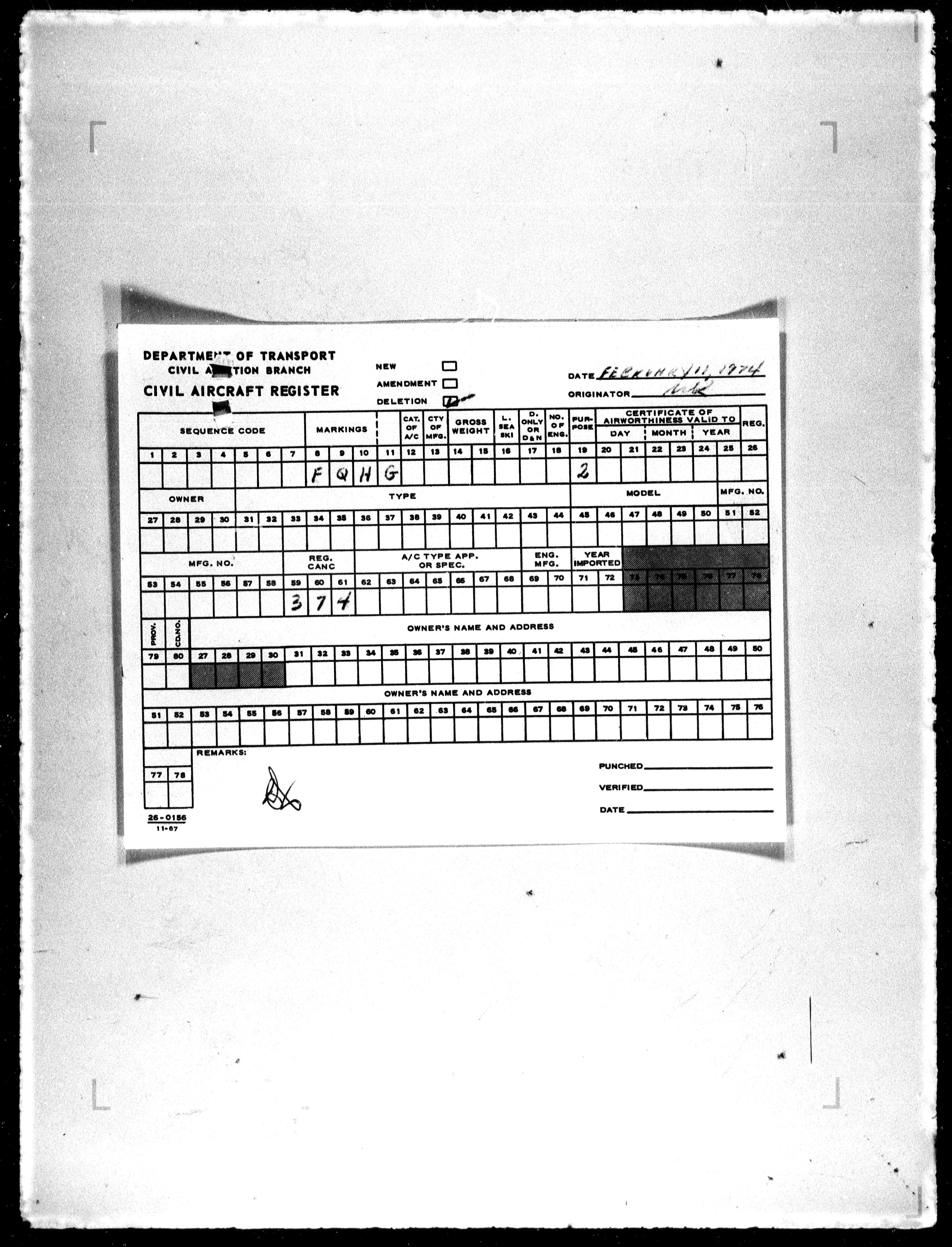 Department of Transport : Civil aircraft registration, inspection and operation files, block 5008, 1920-1986 - 7824
