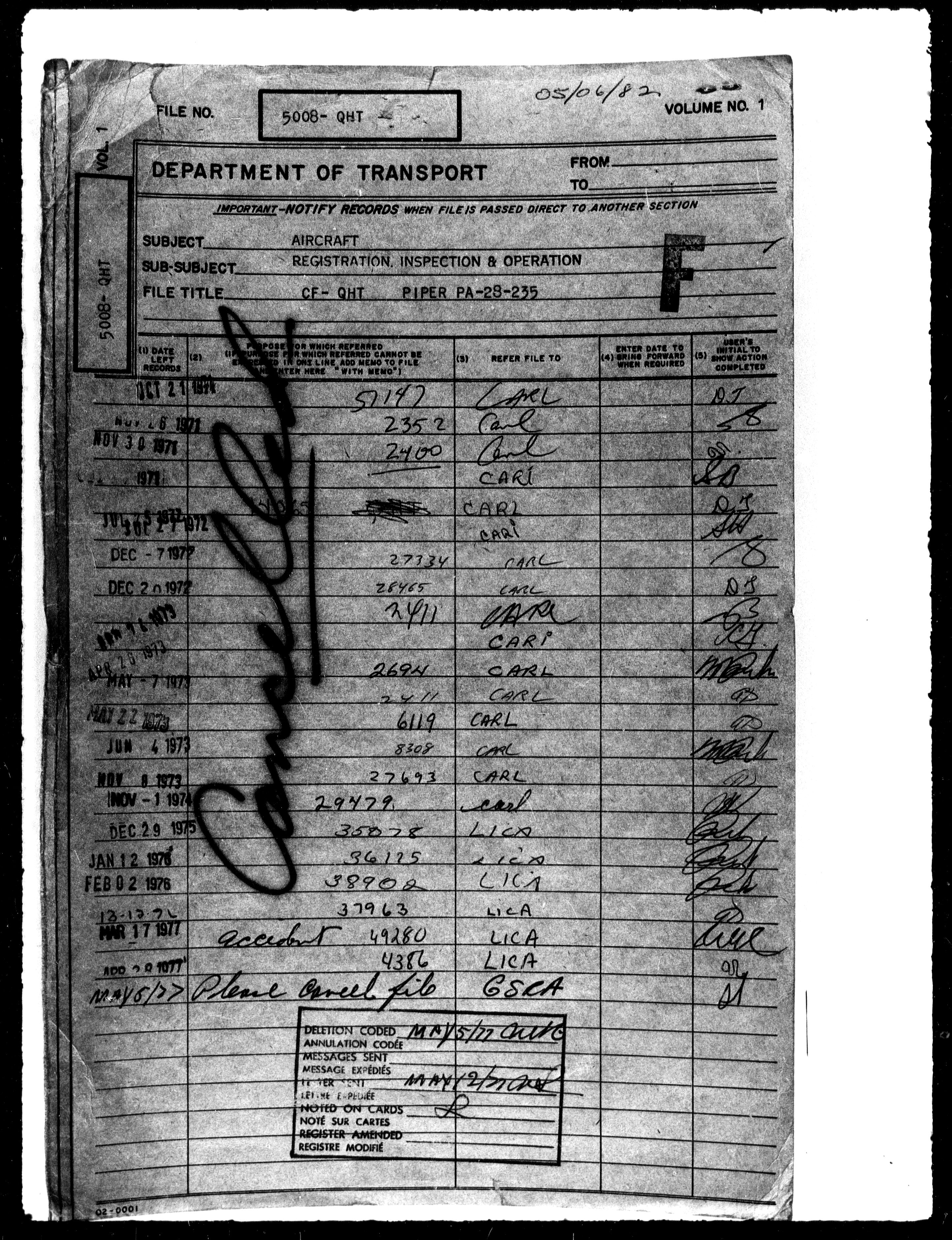 Department of Transport : Civil aircraft registration, inspection and operation files, block 5008, 1920-1986 - 7824