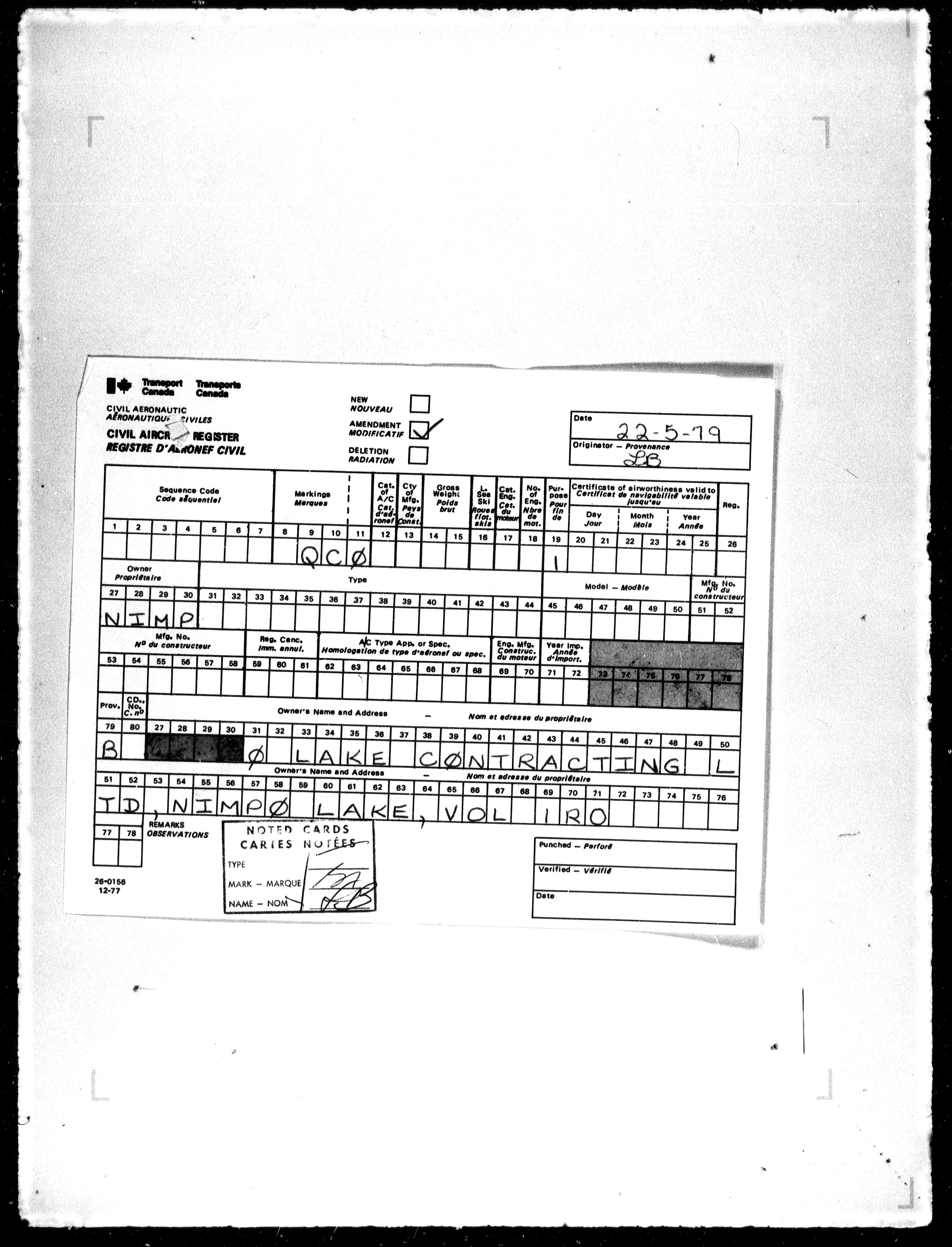 Department of Transport : Civil aircraft registration, inspection and operation files, block 5008, 1920-1986 - 7824