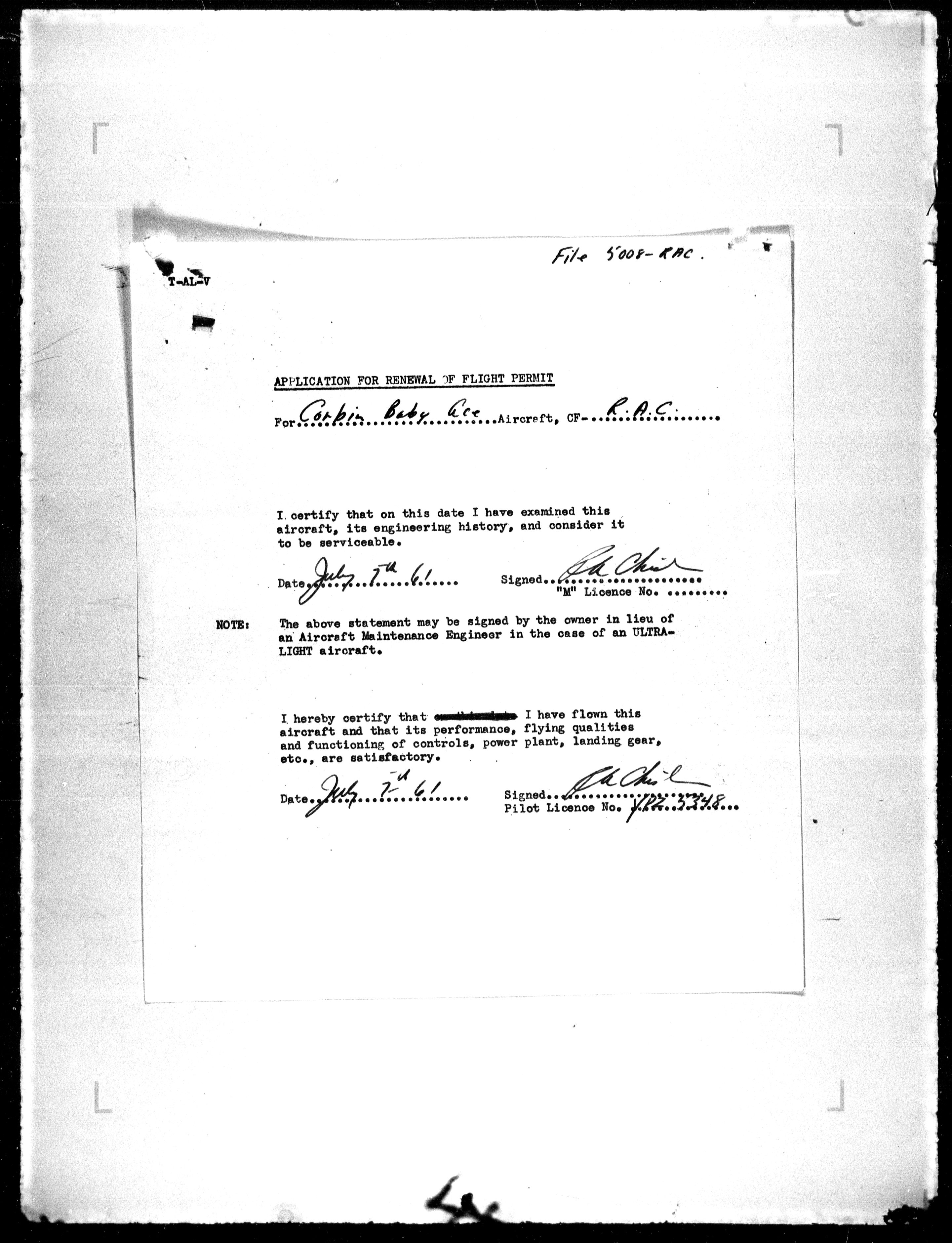 Department of Transport : Civil aircraft registration, inspection and operation files, block 5008, 1920-1986 - 7827
