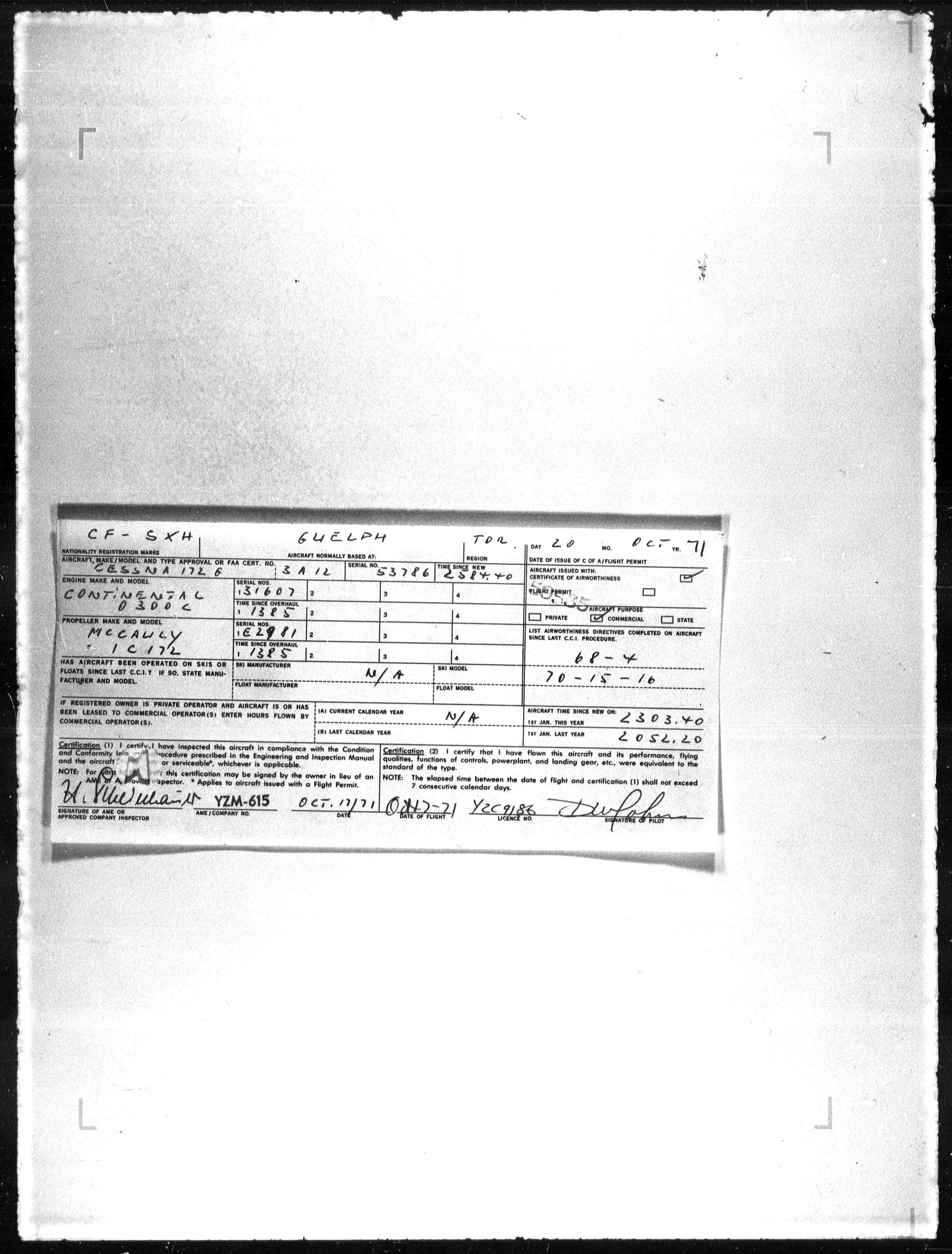Department of Transport : Civil aircraft registration, inspection and operation files, block 5008, 1920-1986 - 7836