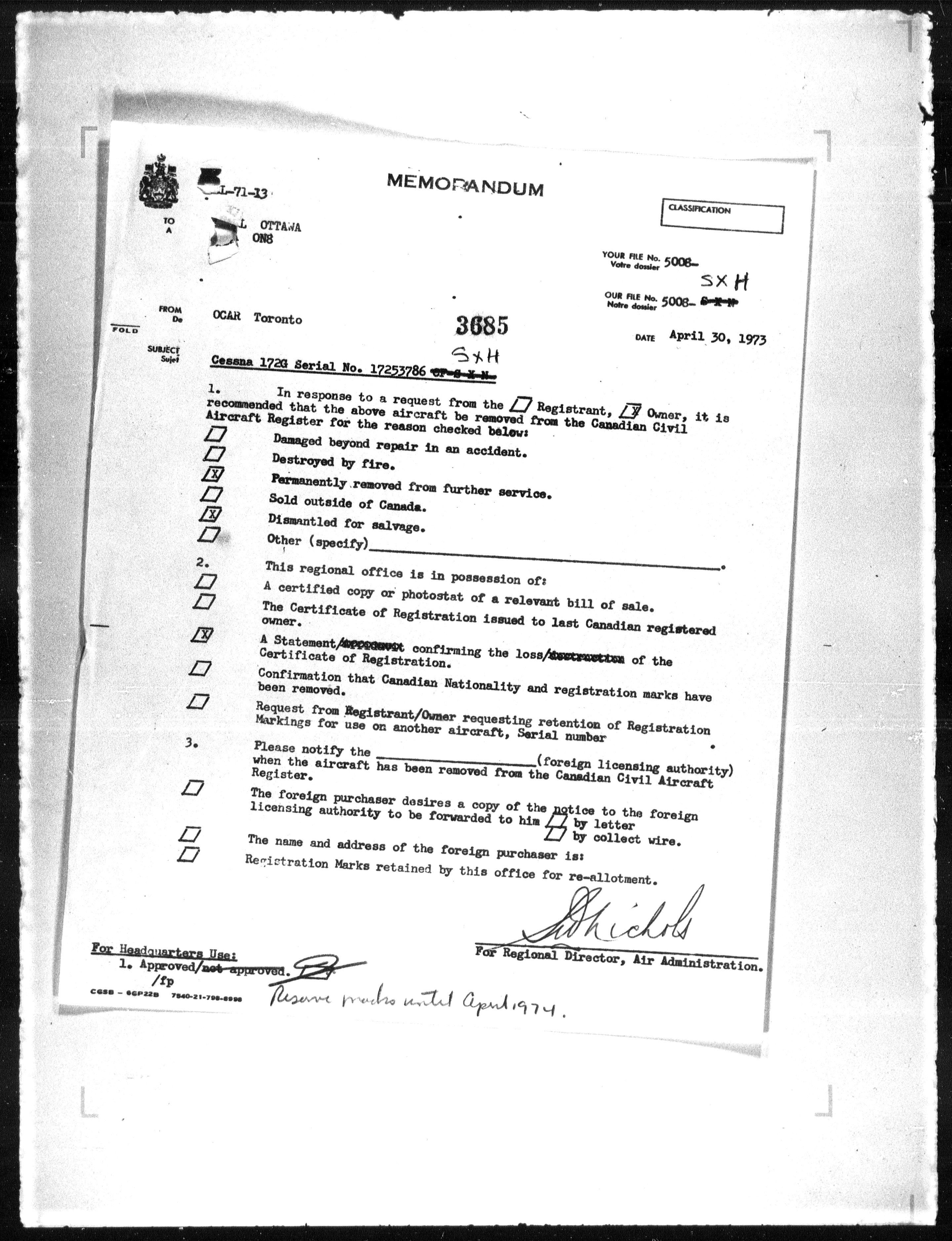 Department of Transport : Civil aircraft registration, inspection and operation files, block 5008, 1920-1986 - 7836