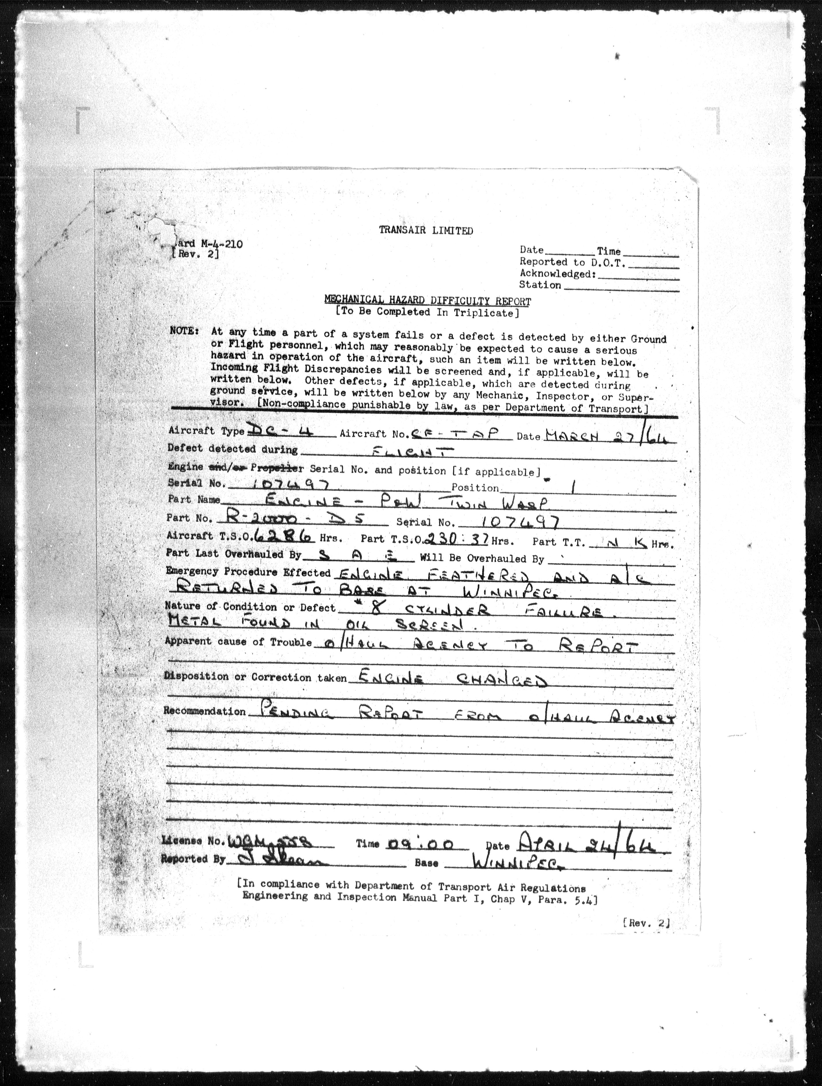 Department of Transport : Civil aircraft registration, inspection and operation files, block 5008, 1920-1986 - 7837