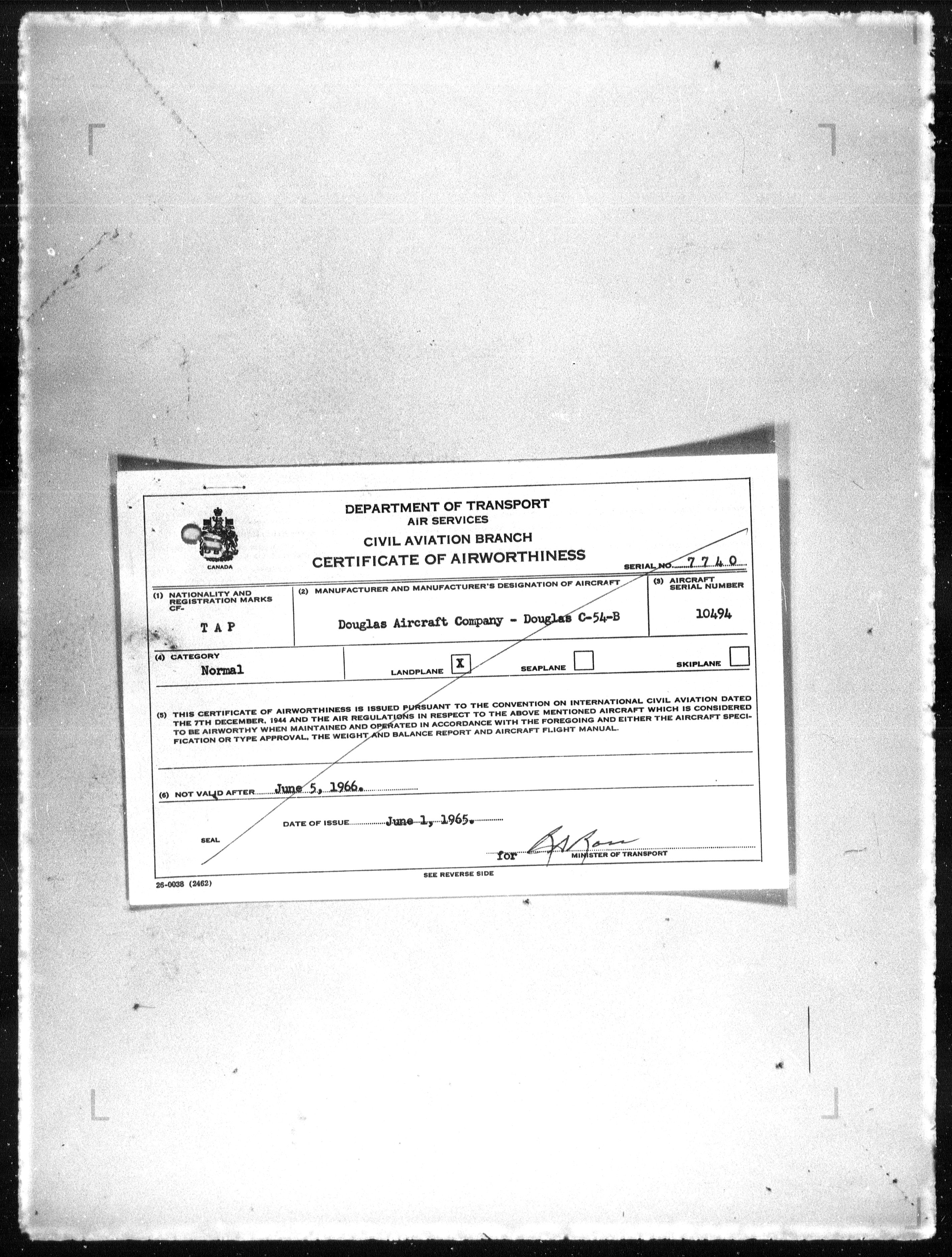 Department of Transport : Civil aircraft registration, inspection and operation files, 1920-1986 : T-7837