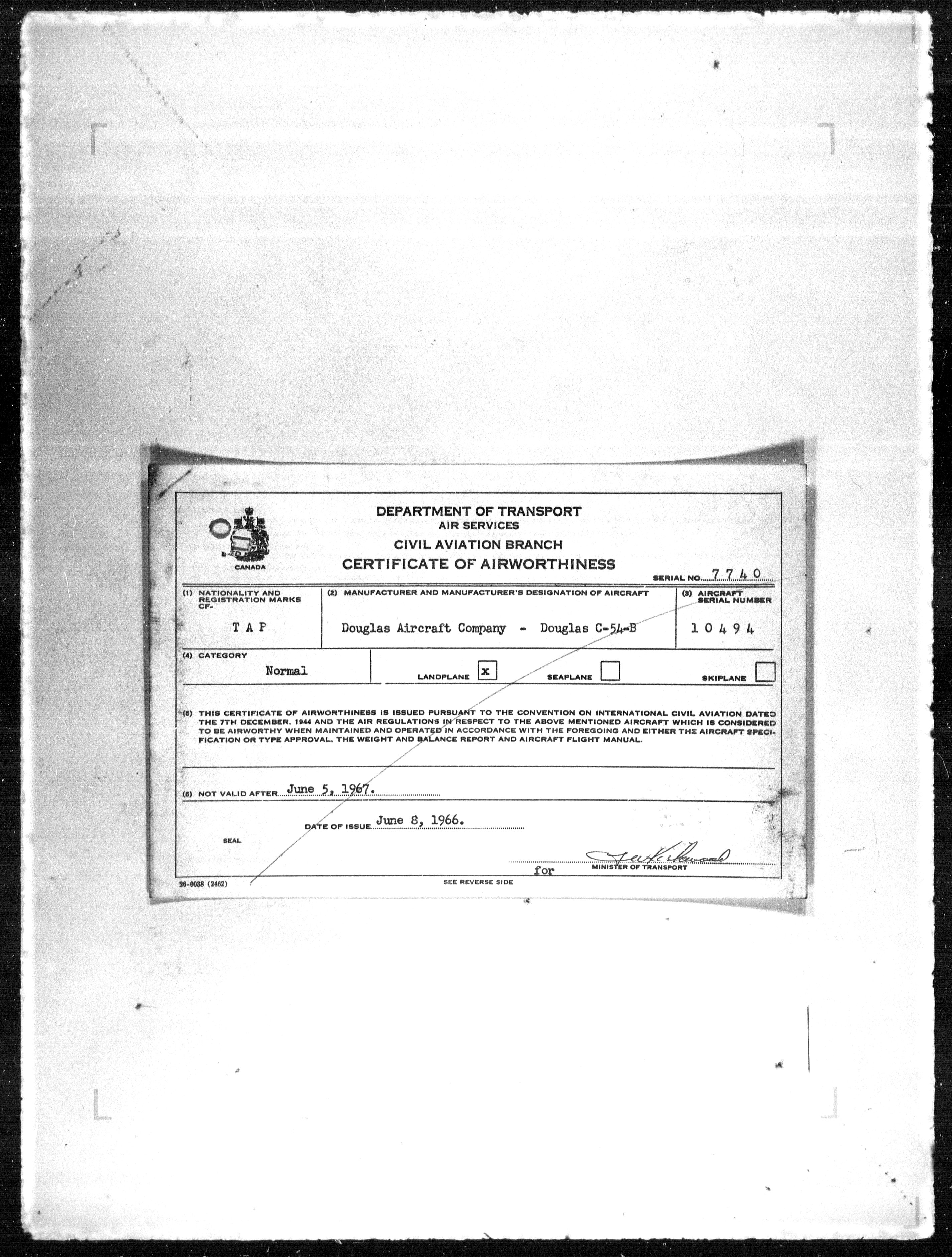 Department of Transport : Civil aircraft registration, inspection and operation files, 1920-1986 : T-7837