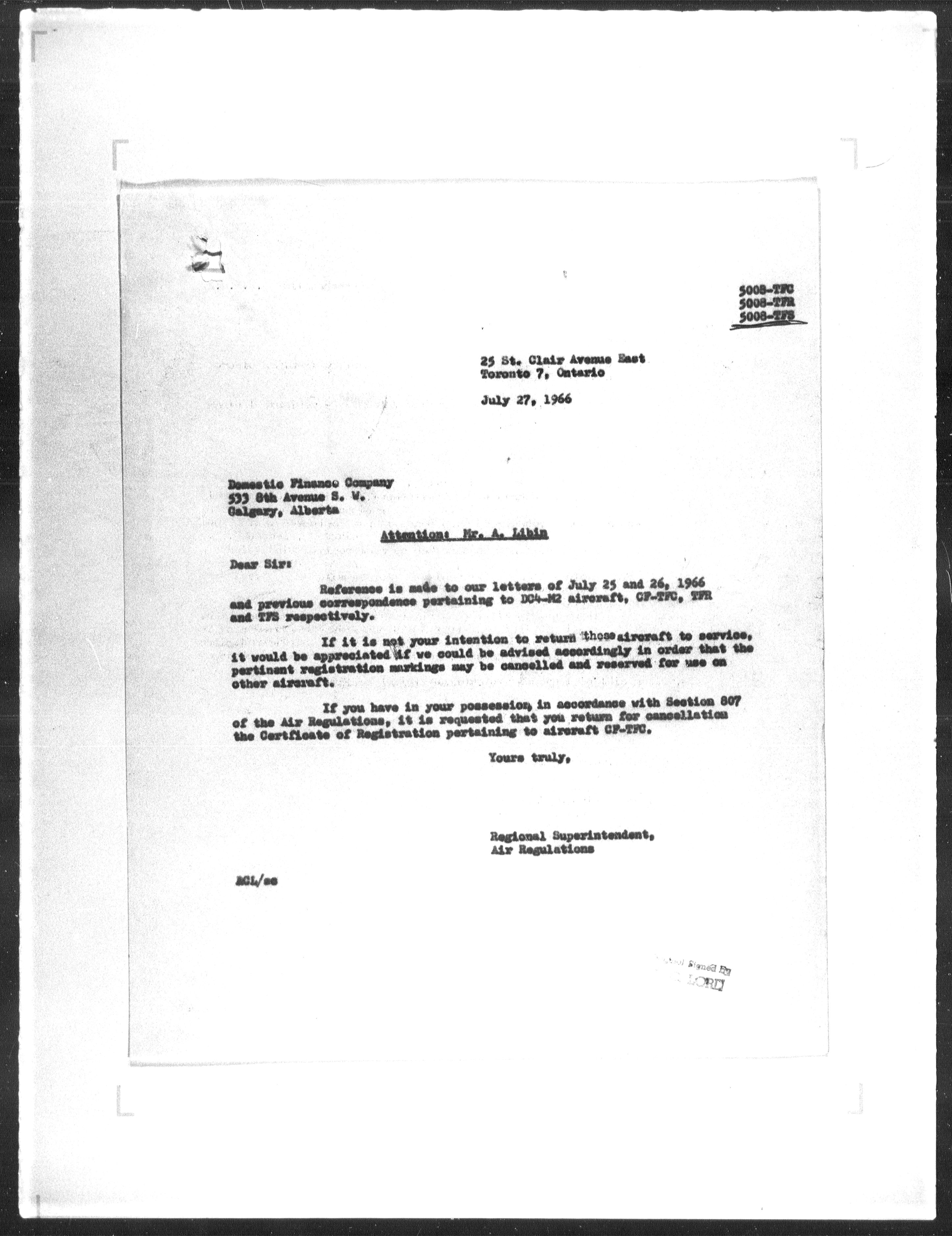 Department of Transport : Civil aircraft registration, inspection and operation files, block 5008, 1920-1986 - 7838
