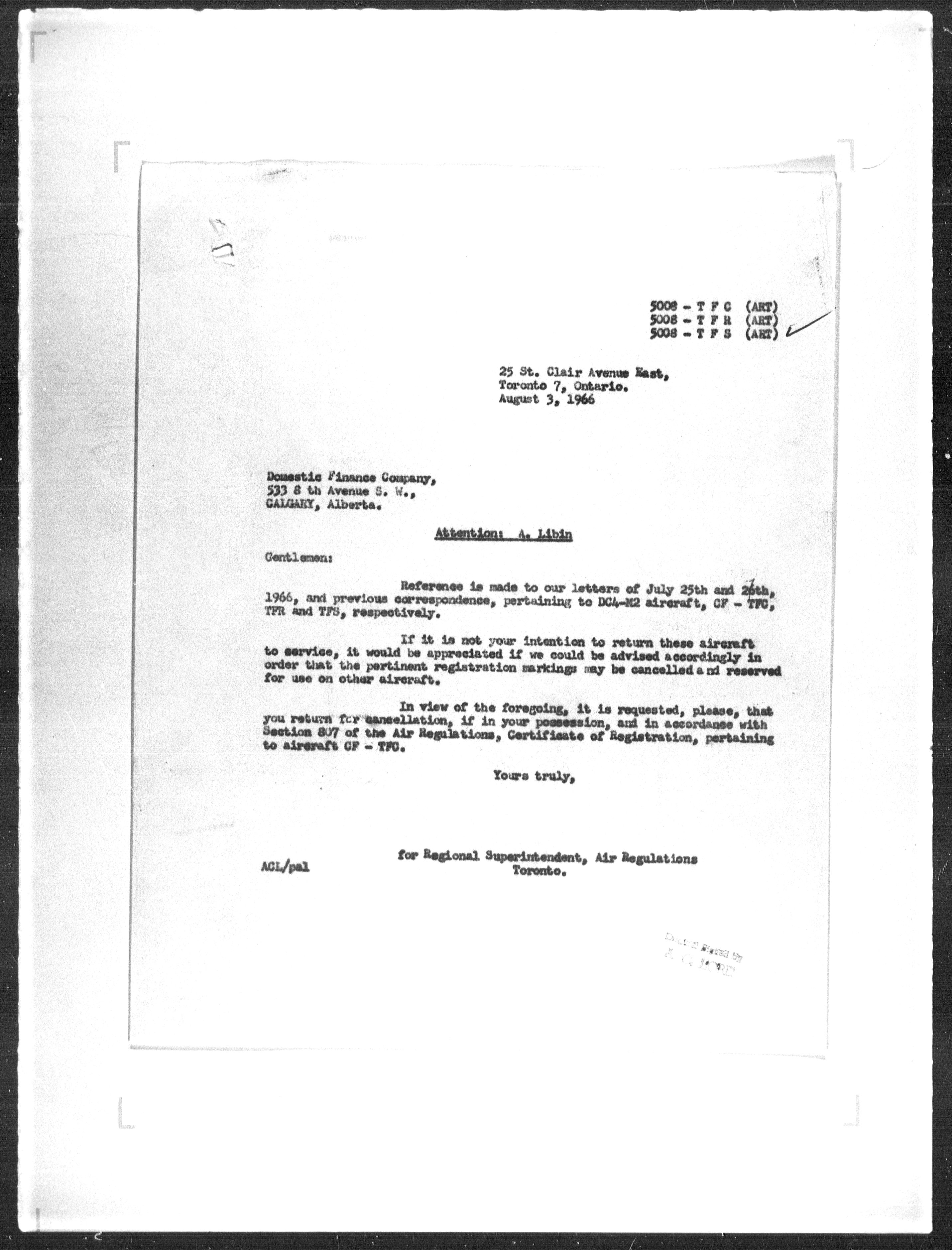 Department of Transport : Civil aircraft registration, inspection and operation files, 1920-1986 : T-7838