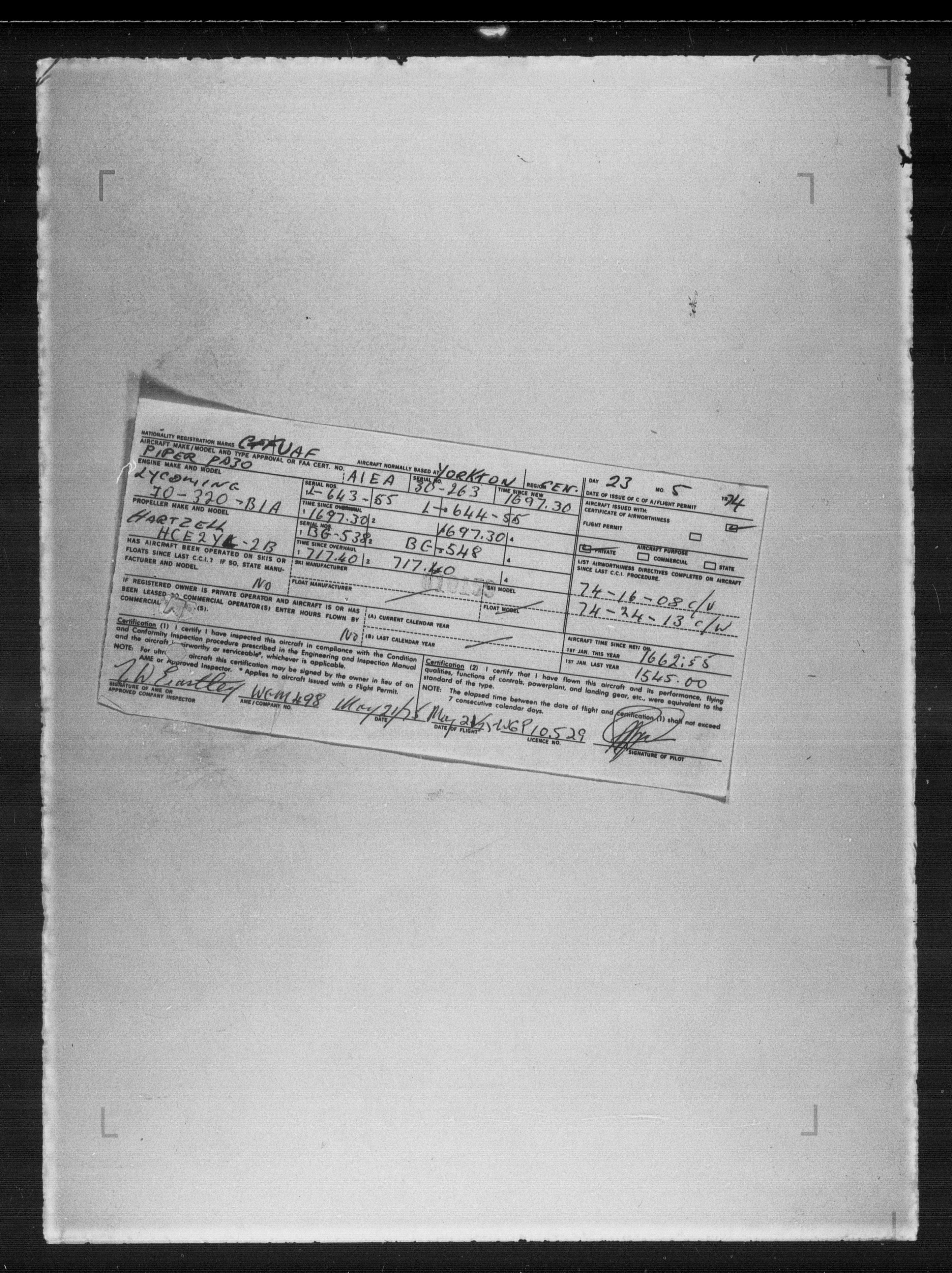 Department of Transport : Civil aircraft registration, inspection and operation files, block 5008, 1920-1986 - 7841