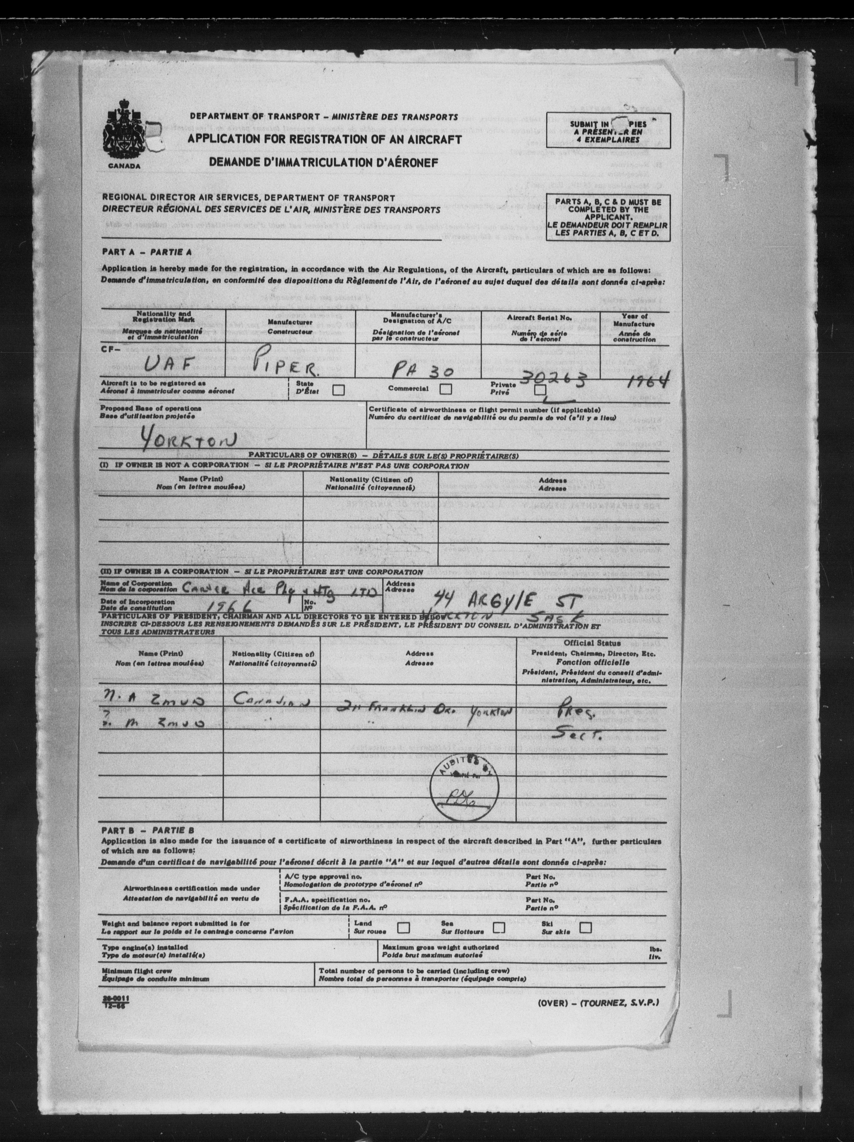 Department of Transport : Civil aircraft registration, inspection and operation files, 1920-1986 : T-7841