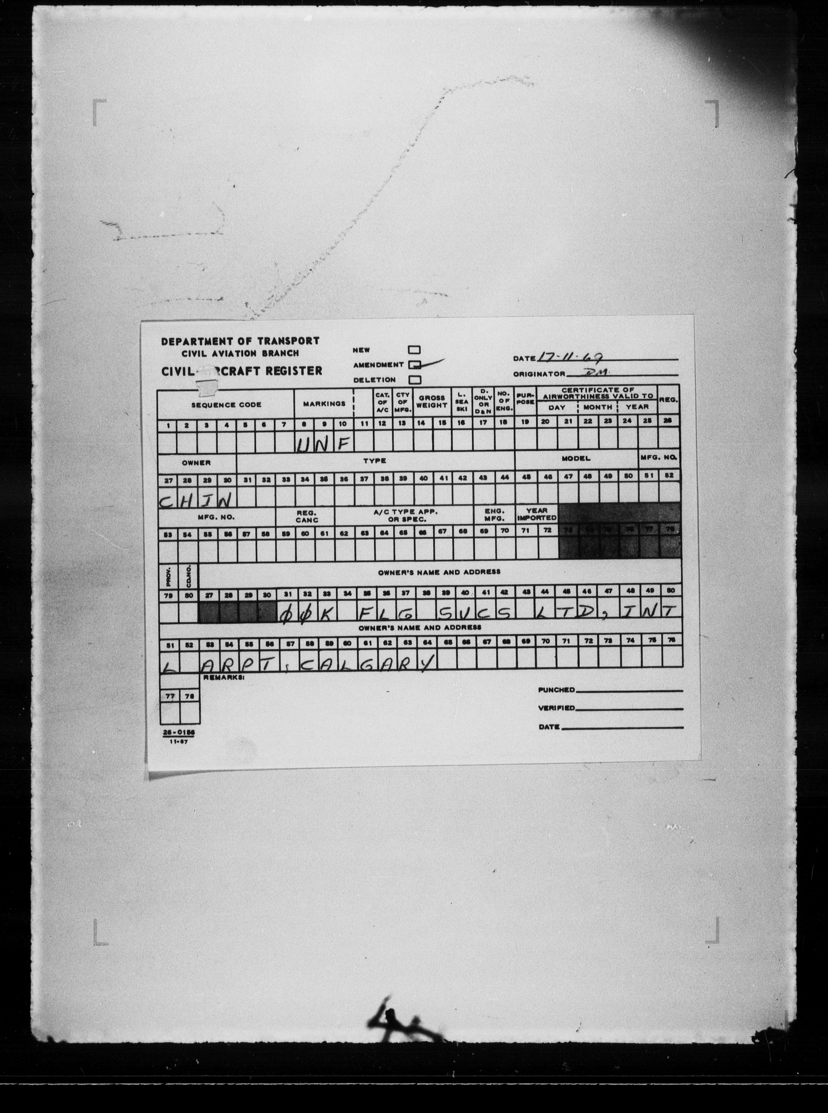 Department of Transport : Civil aircraft registration, inspection and operation files, block 5008, 1920-1986 - 7843