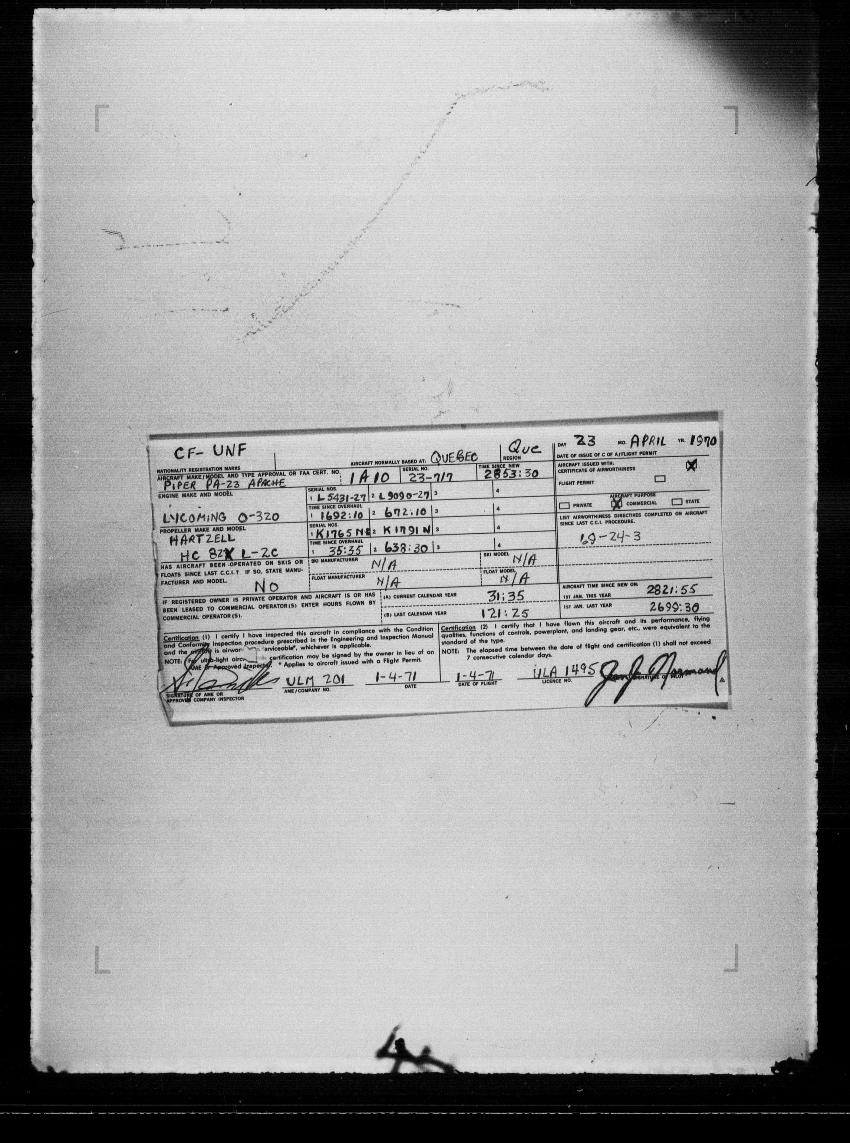 Department of Transport : Civil aircraft registration, inspection and operation files, block 5008, 1920-1986 - 7843