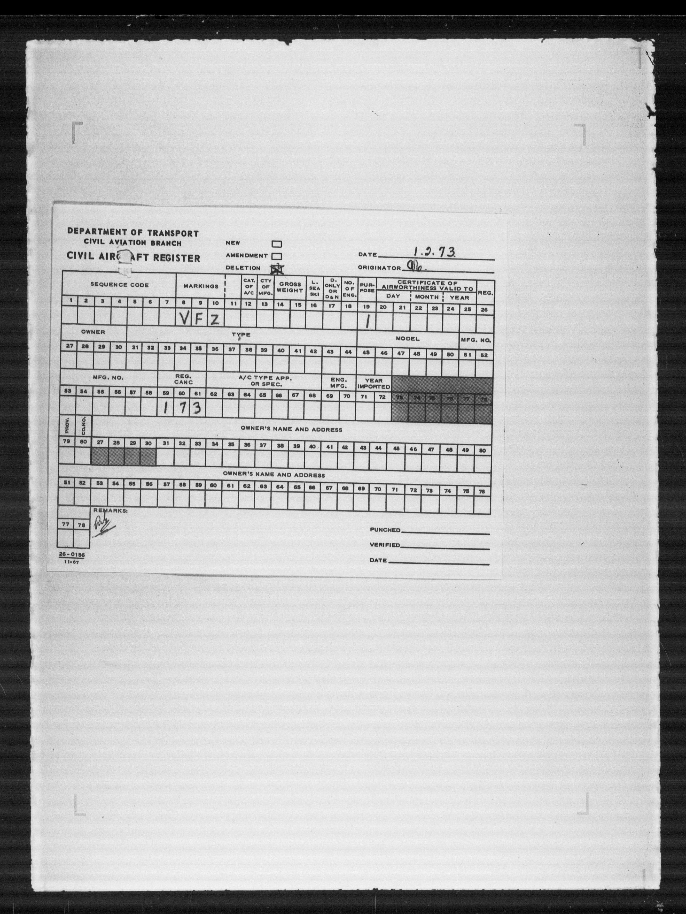 Department of Transport : Civil aircraft registration, inspection and operation files, block 5008, 1920-1986 - 7845