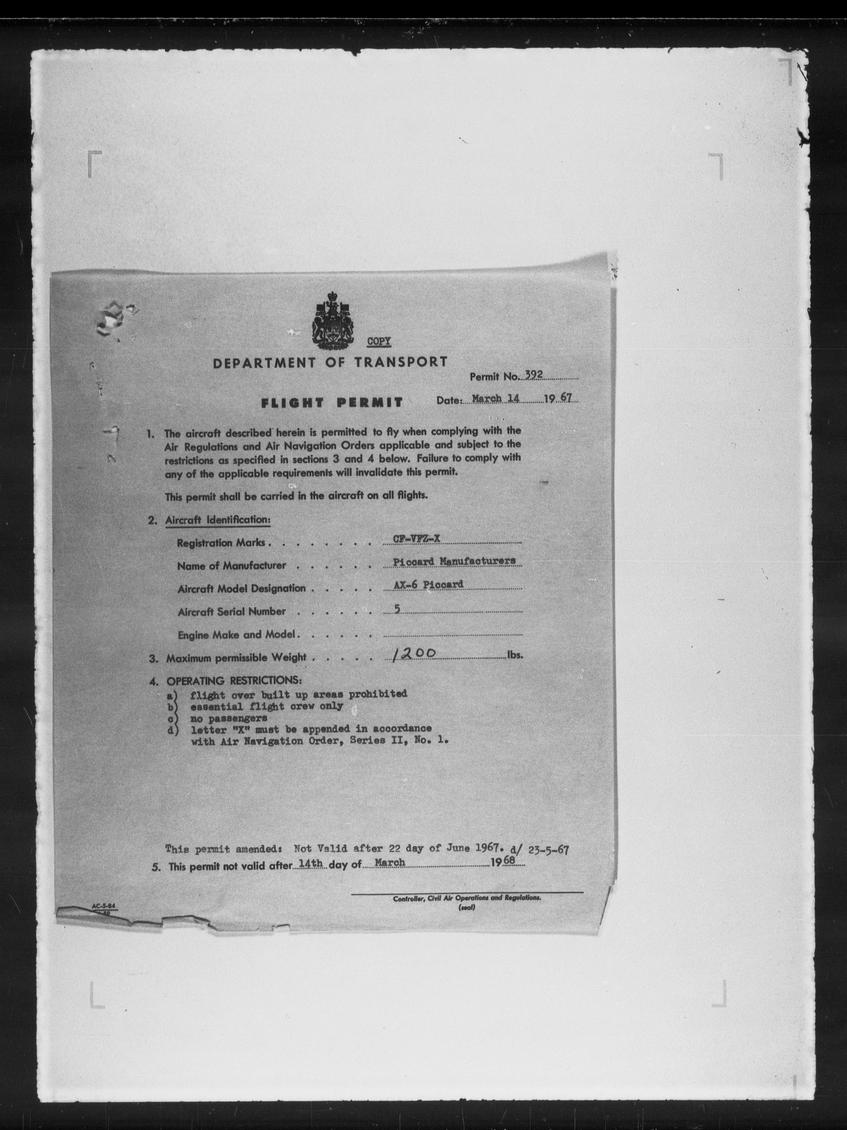 Department of Transport : Civil aircraft registration, inspection and operation files, block 5008, 1920-1986 - 7845
