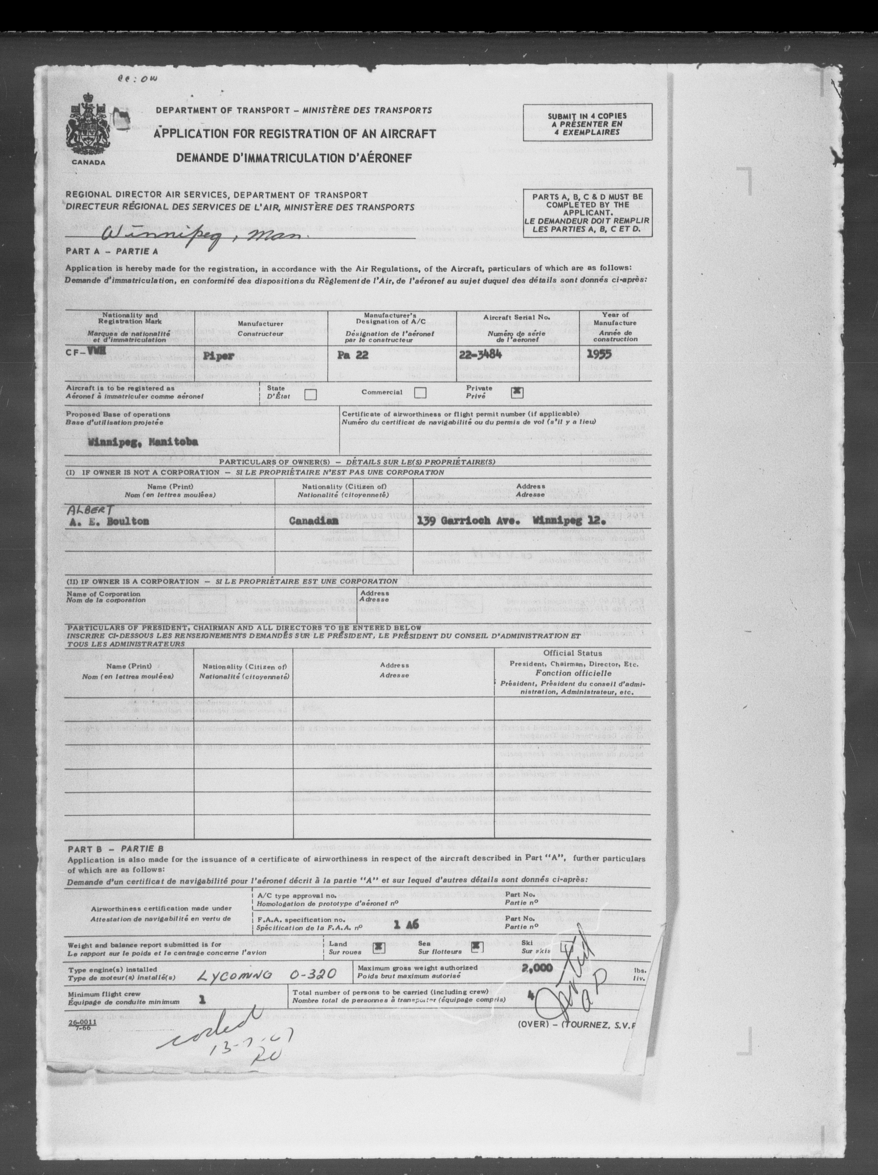 Department of Transport : Civil aircraft registration, inspection and operation files, block 5008, 1920-1986 - 7847