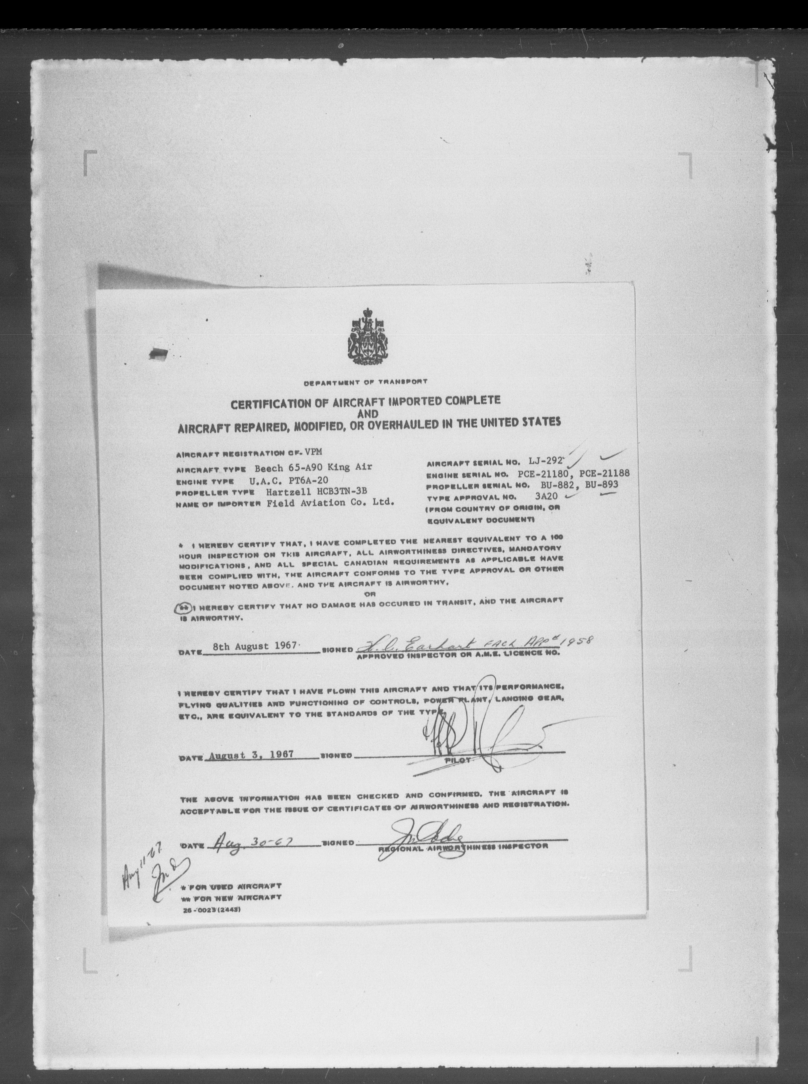 Department of Transport : Civil aircraft registration, inspection and operation files, block 5008, 1920-1986 - 7847