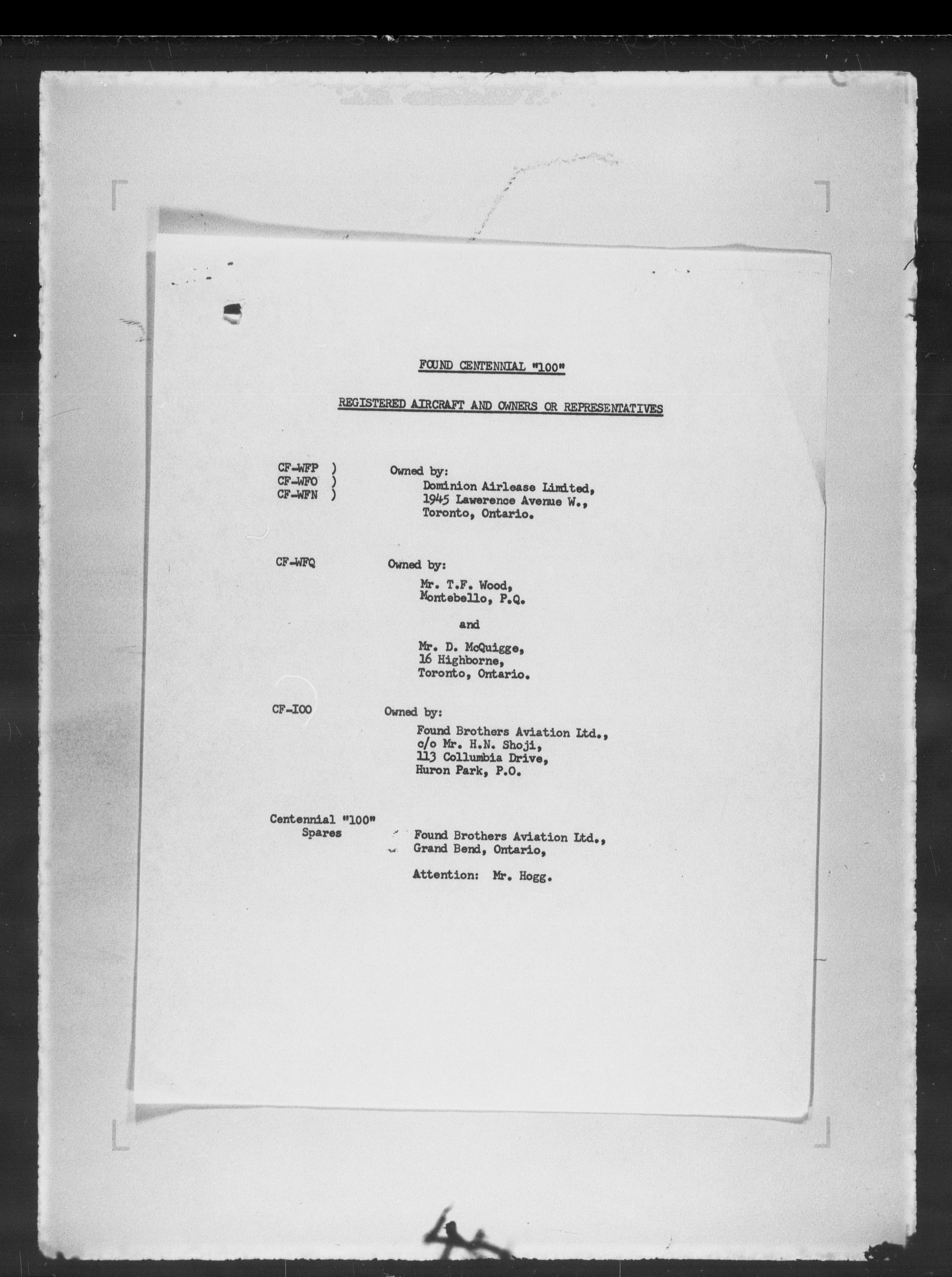 Department of Transport : Civil aircraft registration, inspection and operation files, block 5008, 1920-1986 - 7849