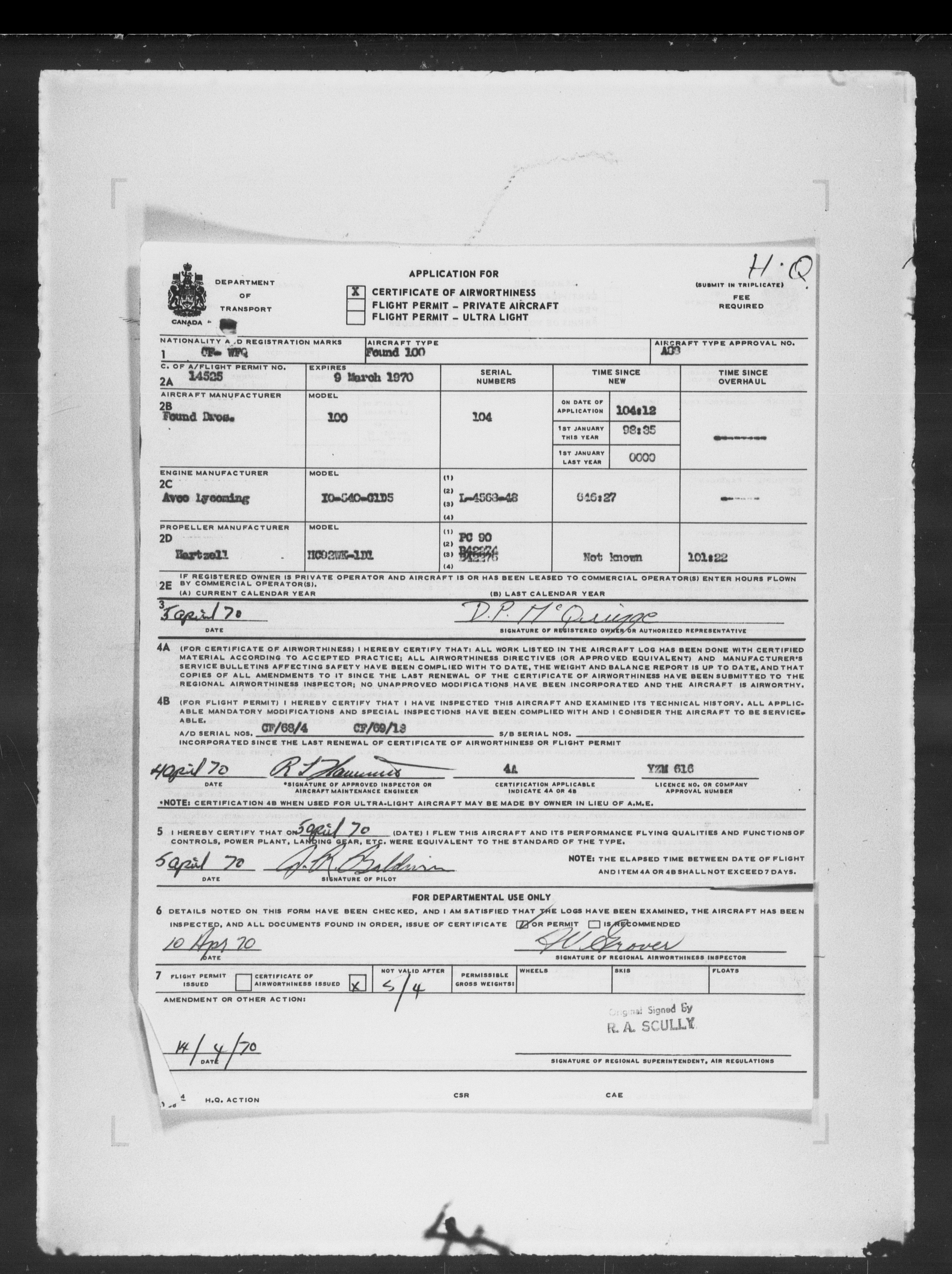 Department of Transport : Civil aircraft registration, inspection and operation files, block 5008, 1920-1986 - 7849