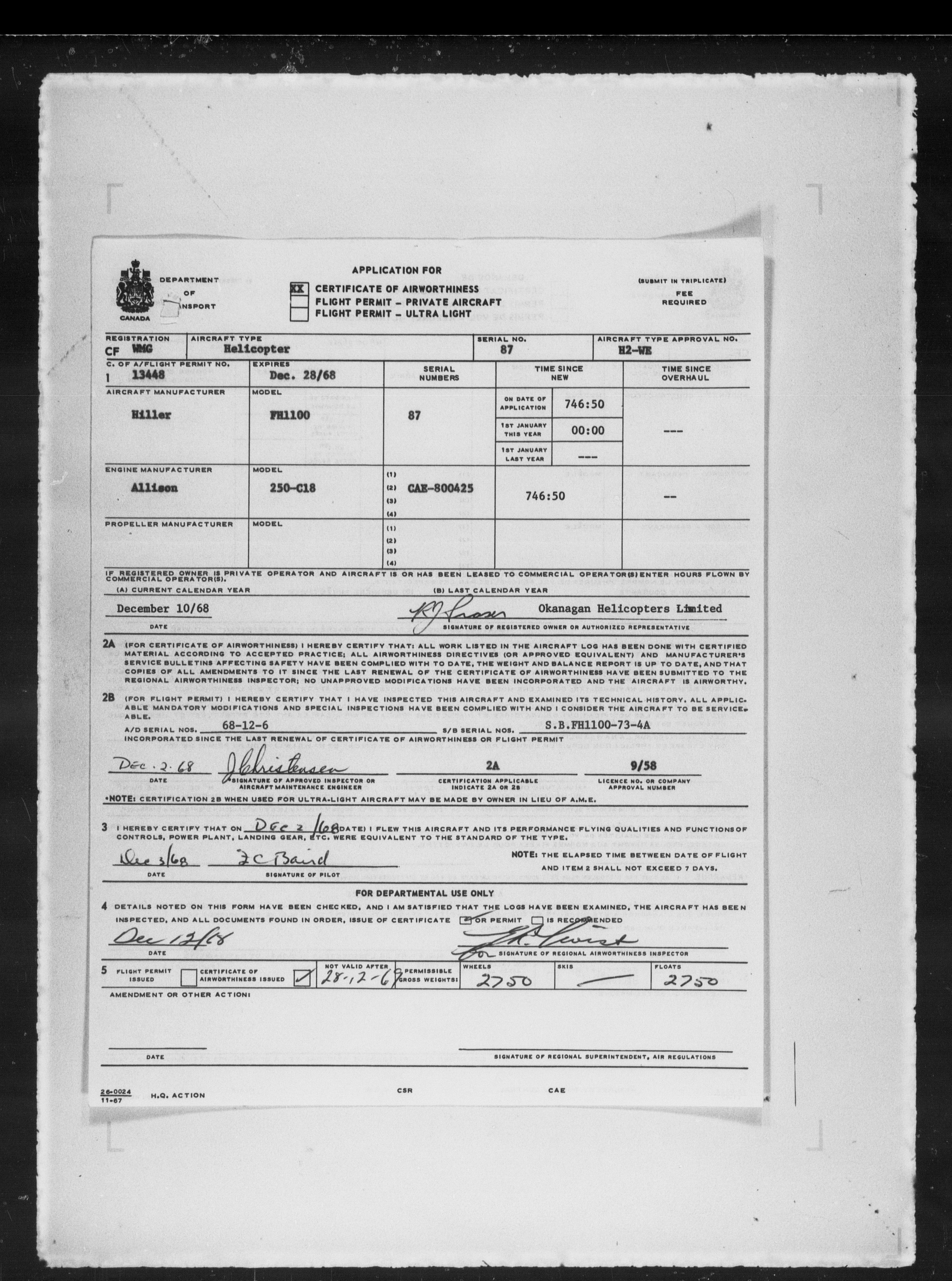 Department of Transport : Civil aircraft registration, inspection and operation files, block 5008, 1920-1986 - 7850