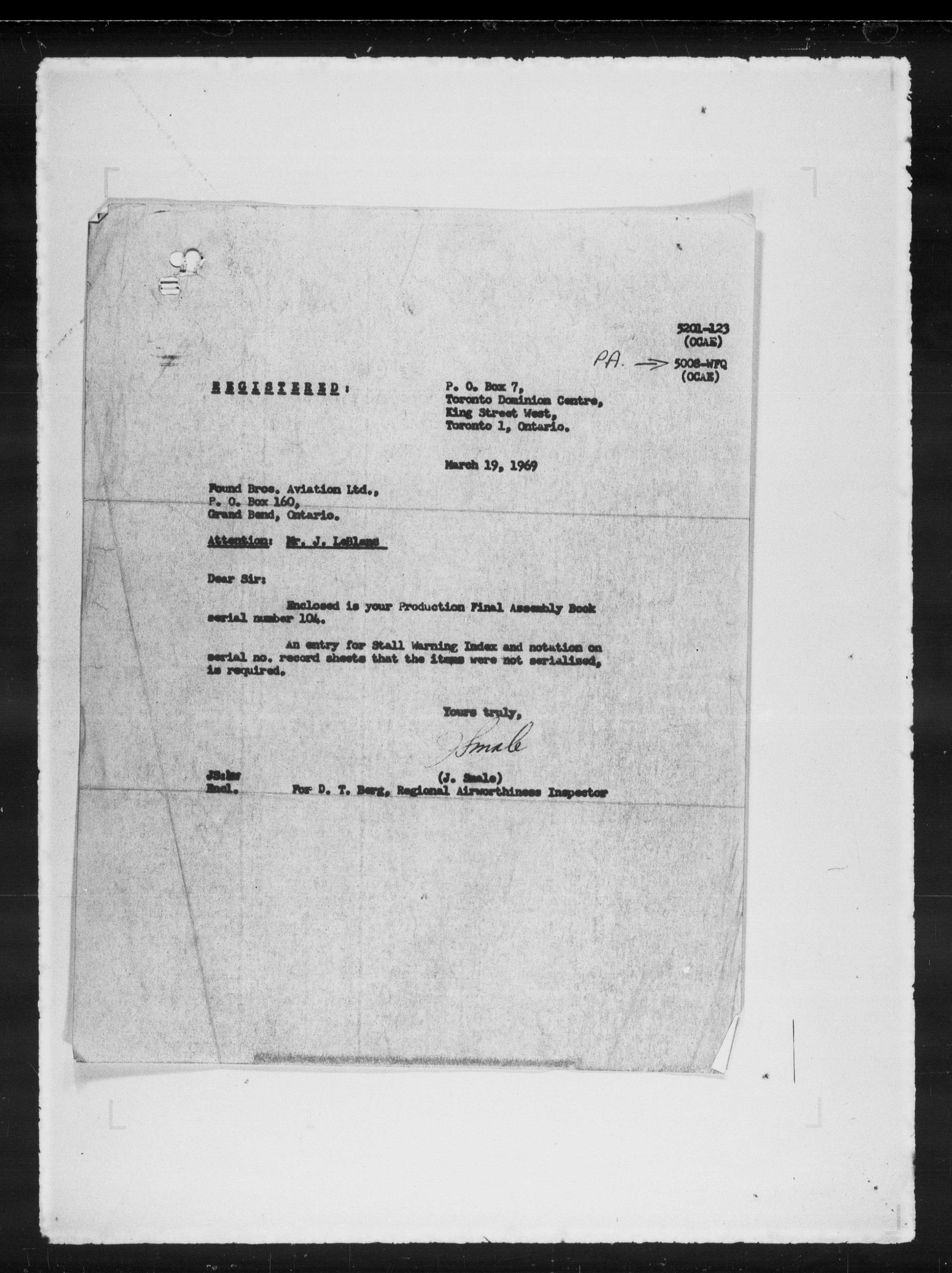 Department of Transport : Civil aircraft registration, inspection and operation files, block 5008, 1920-1986 - 7850