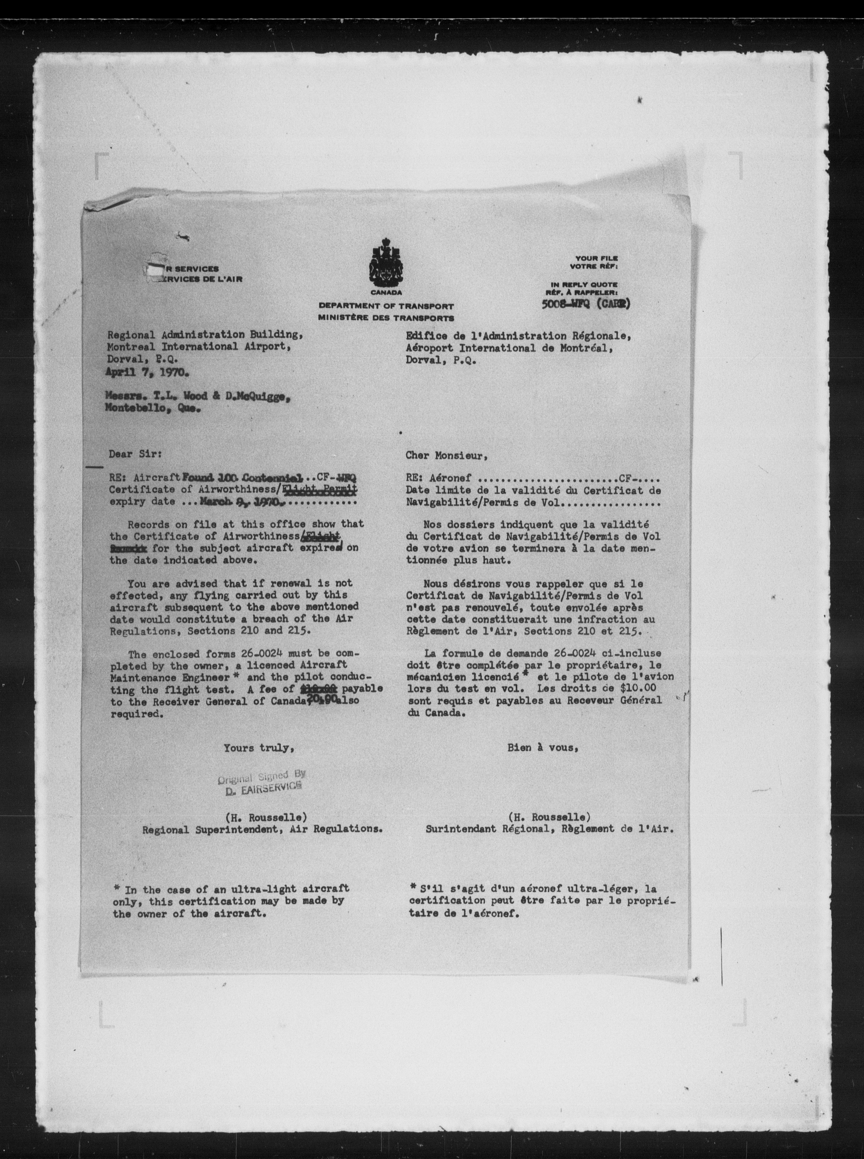 Department of Transport : Civil aircraft registration, inspection and operation files, block 5008, 1920-1986 - 7850