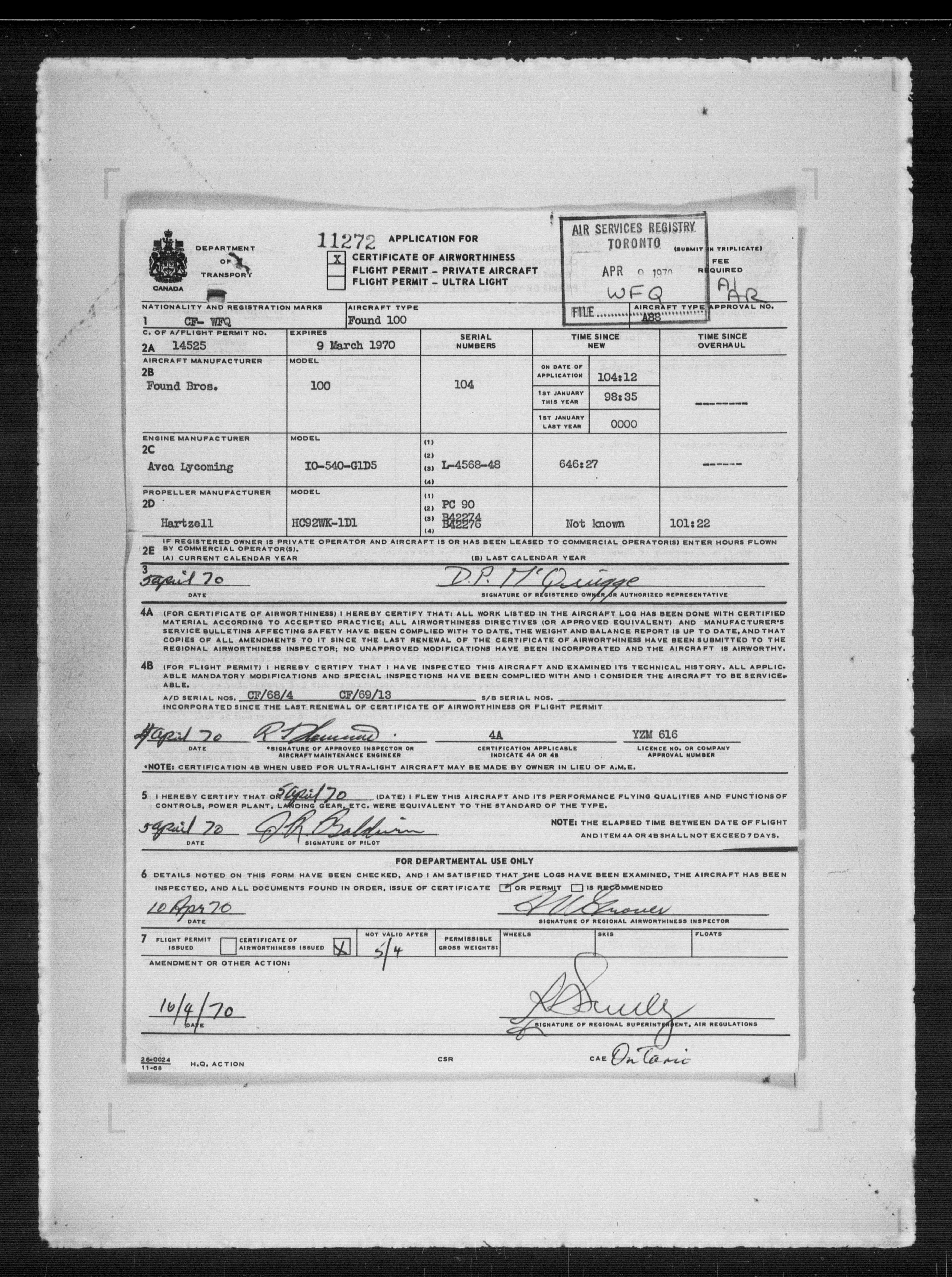Department of Transport : Civil aircraft registration, inspection and operation files, block 5008, 1920-1986 - 7850