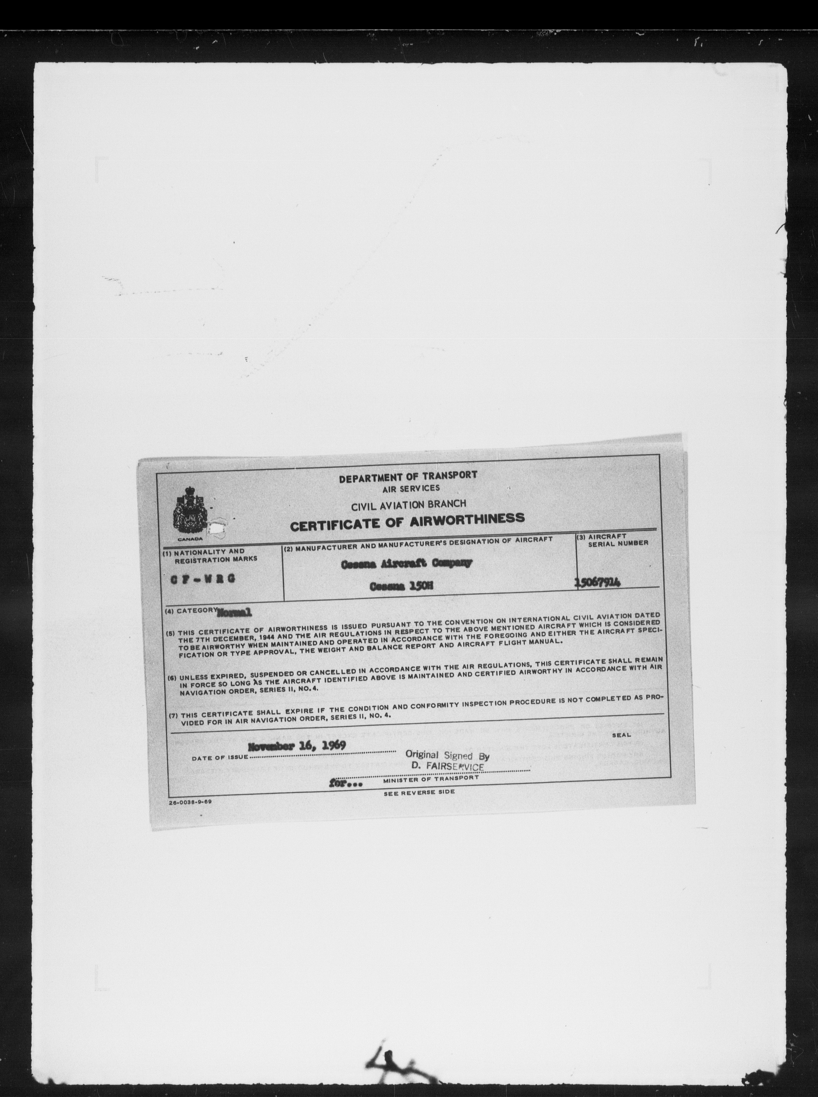 Department of Transport : Civil aircraft registration, inspection and operation files, block 5008, 1920-1986 - 7852