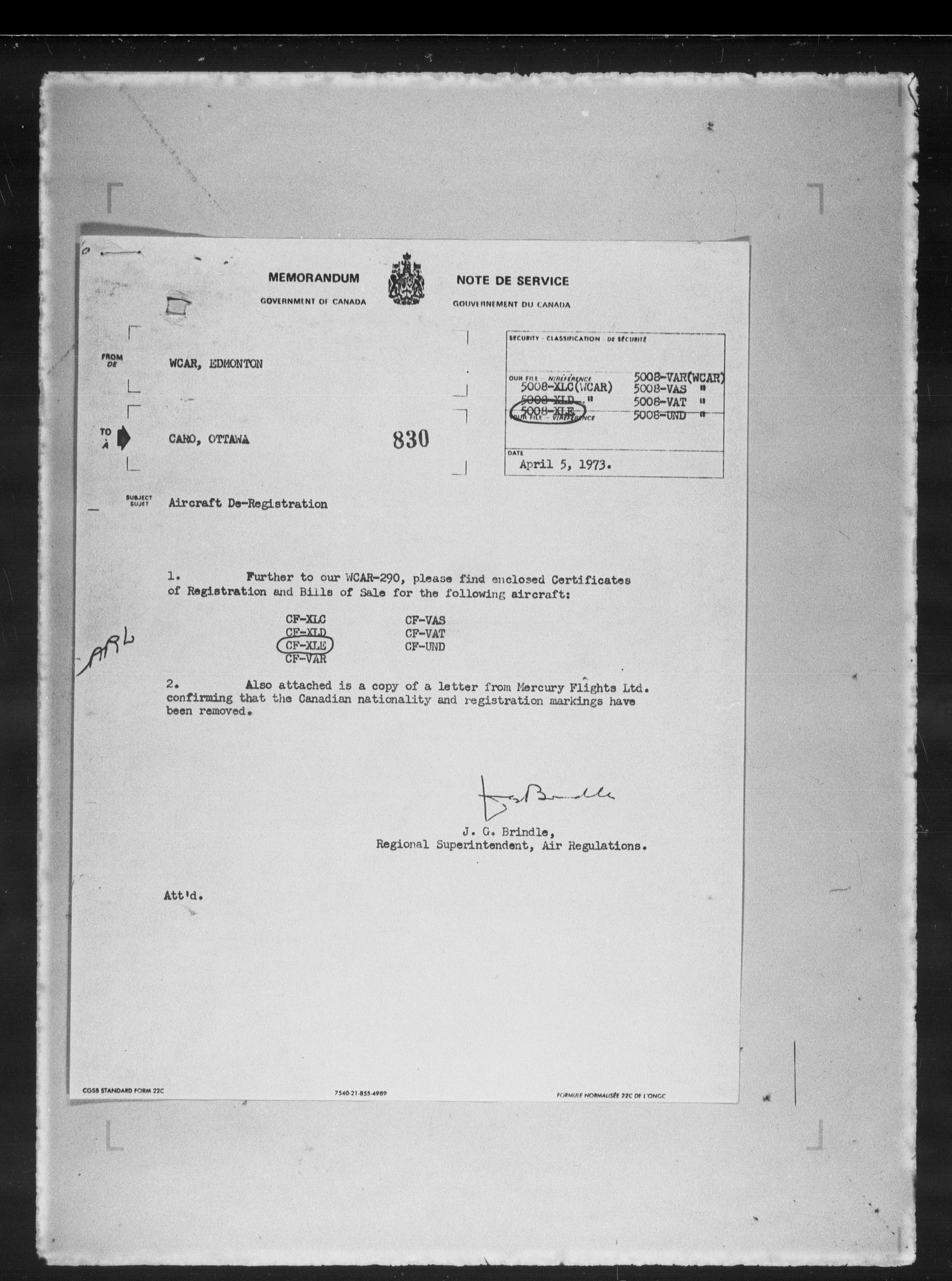 Department of Transport : Civil aircraft registration, inspection and operation files, block 5008, 1920-1986 - 7855