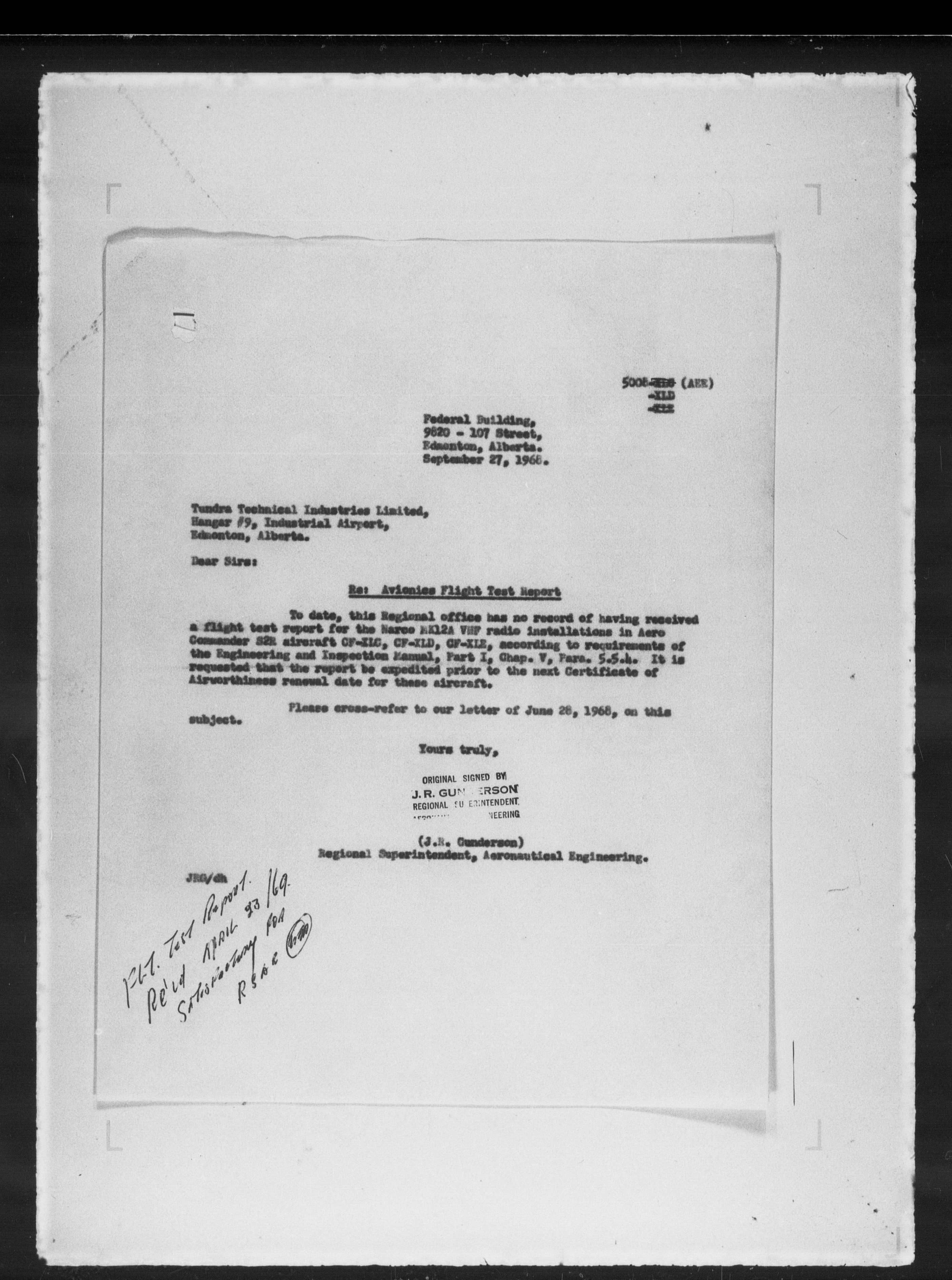 Department of Transport : Civil aircraft registration, inspection and operation files, block 5008, 1920-1986 - 7855