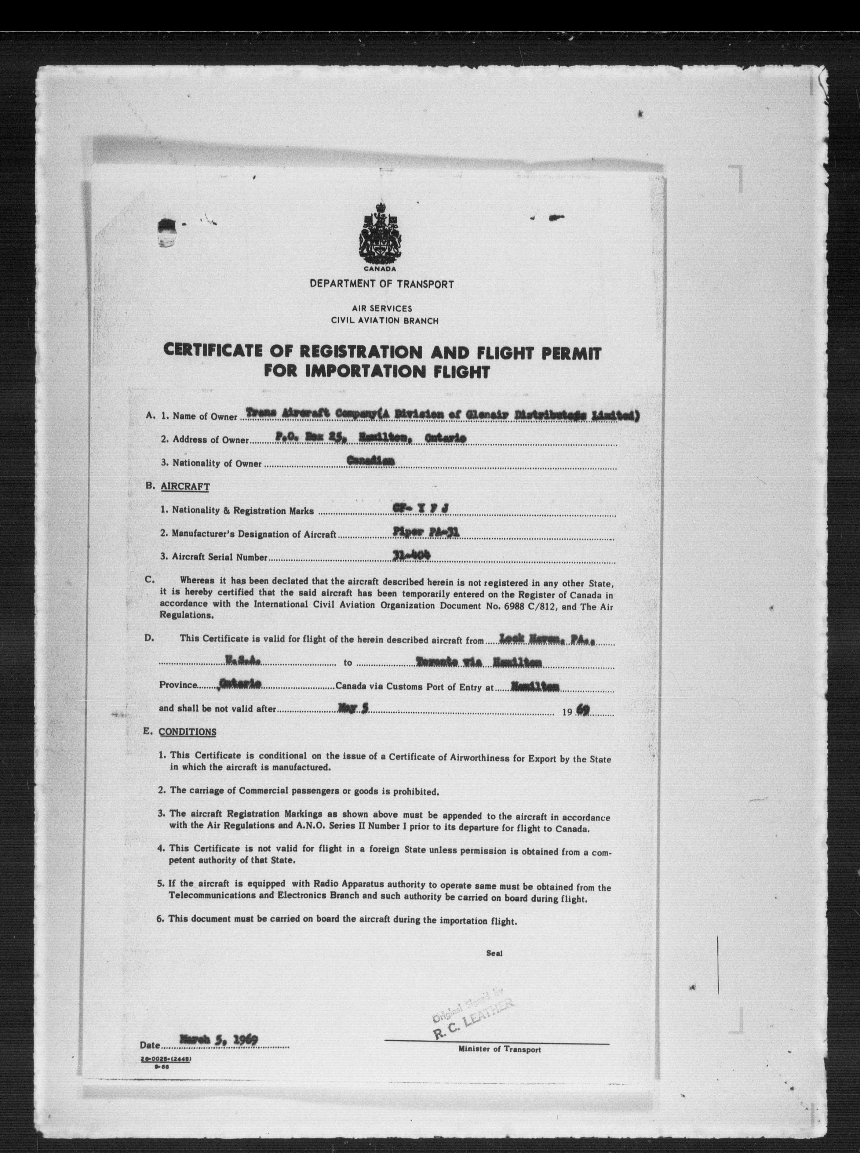 Department of Transport : Civil aircraft registration, inspection and operation files, block 5008, 1920-1986 - 7857