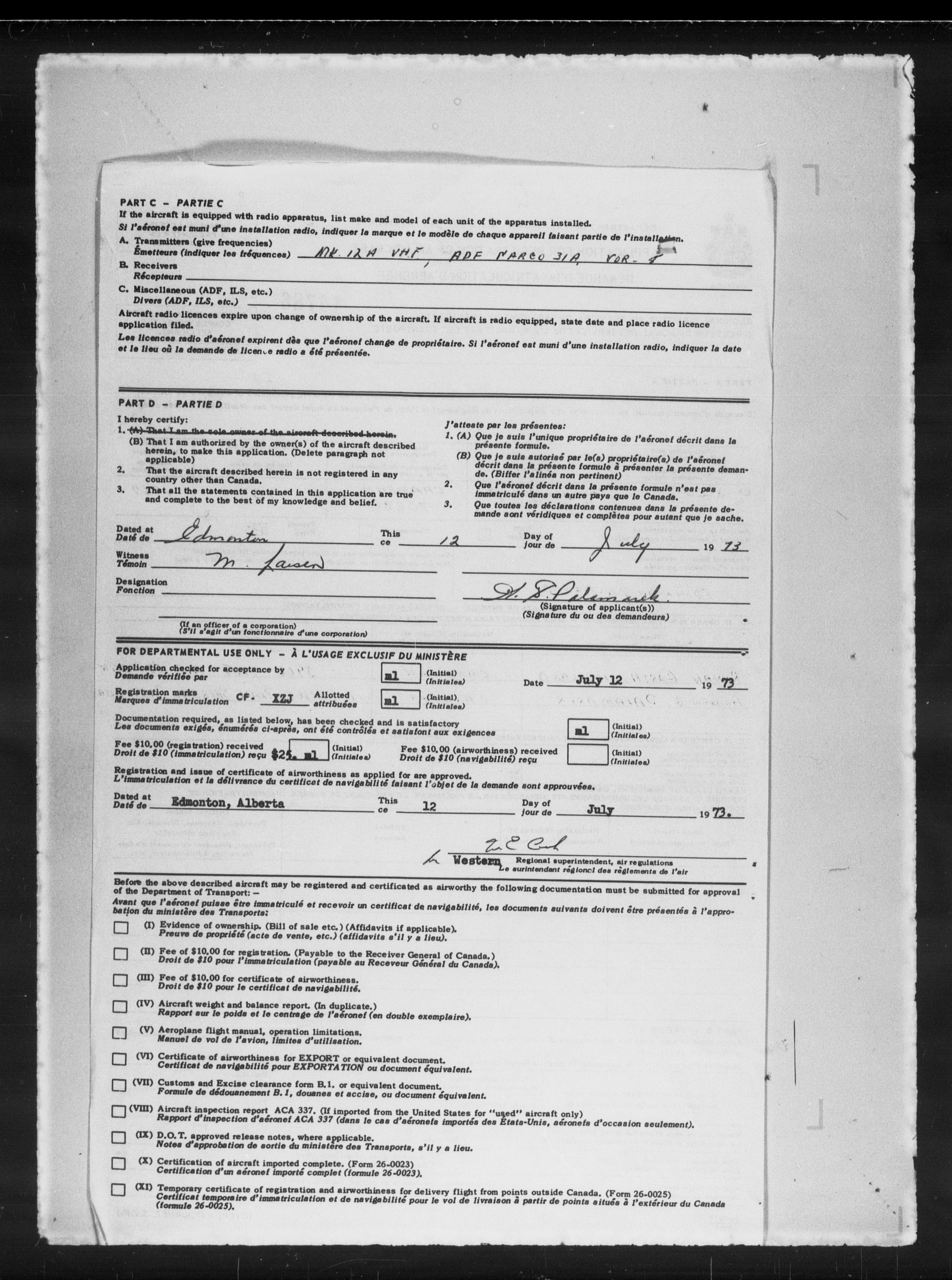 Department of Transport : Civil aircraft registration, inspection and operation files, block 5008, 1920-1986 - 7857