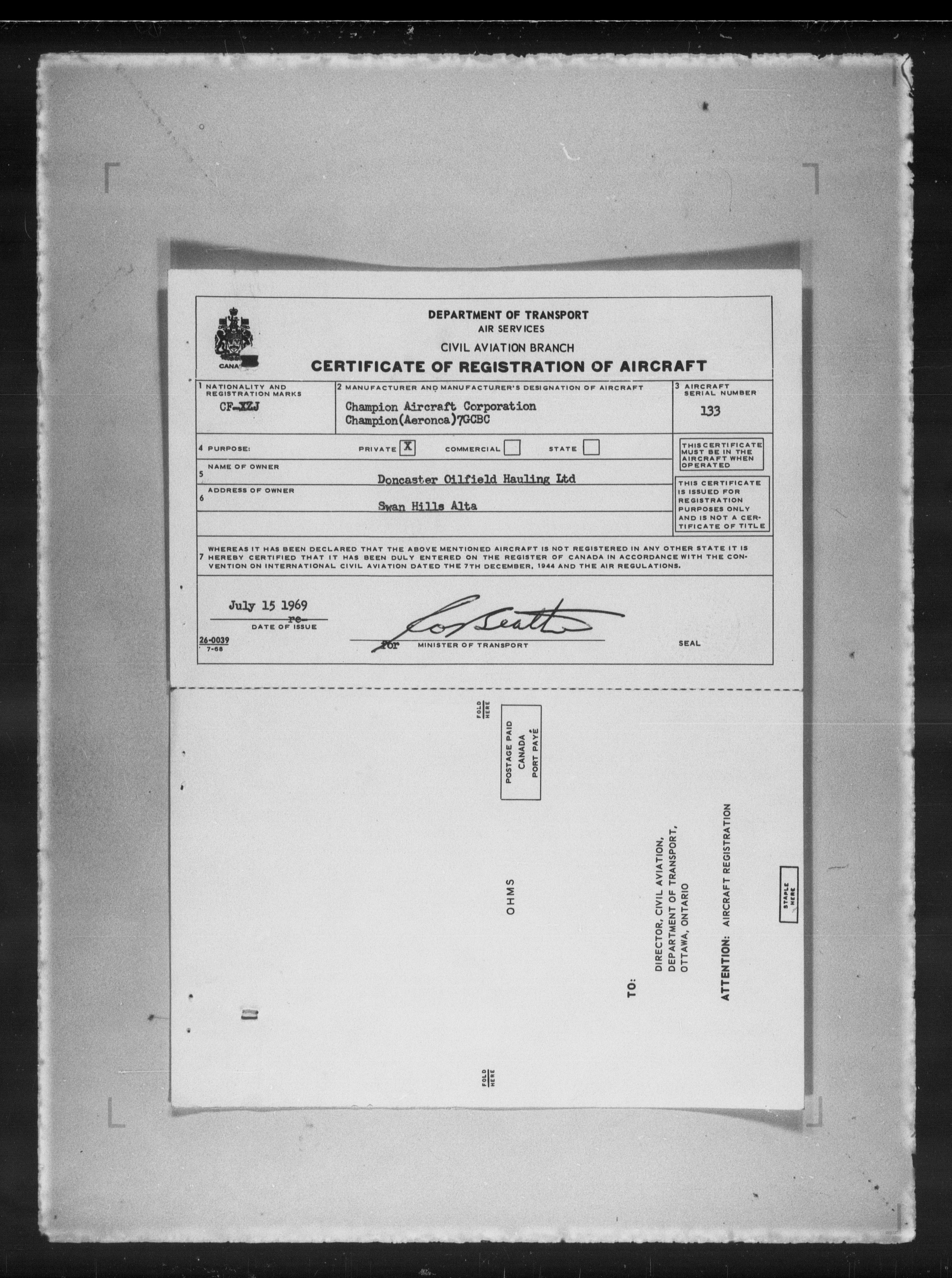 Department of Transport : Civil aircraft registration, inspection and operation files, block 5008, 1920-1986 - 7857