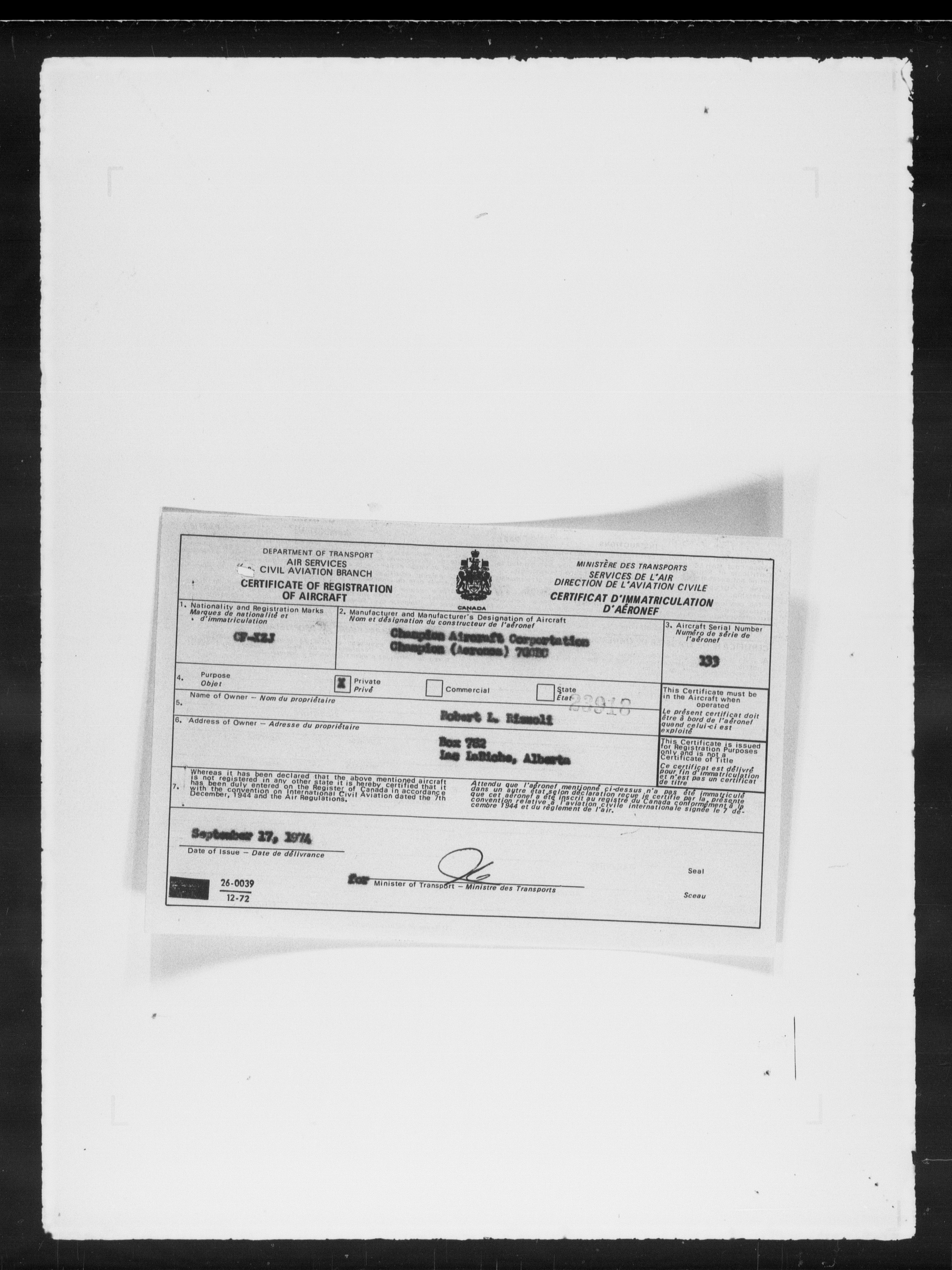 Department of Transport : Civil aircraft registration, inspection and operation files, block 5008, 1920-1986 - 7857