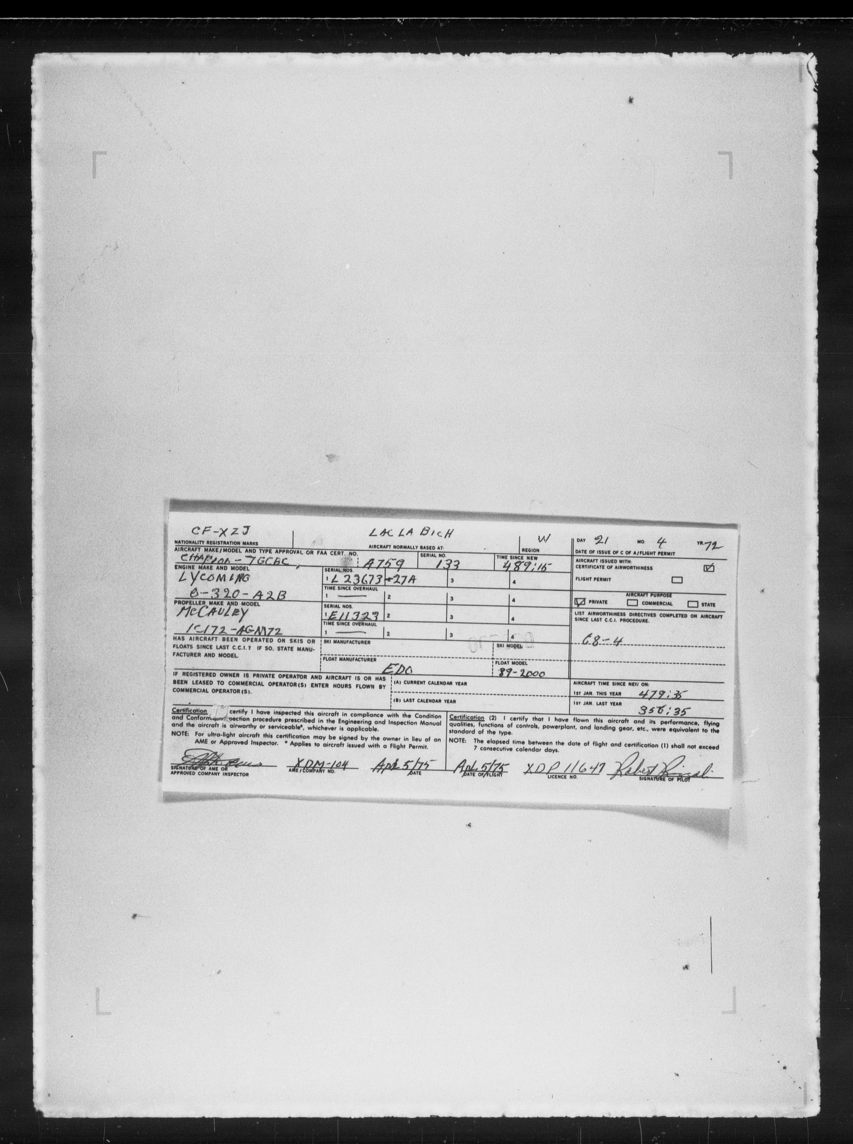 Department of Transport : Civil aircraft registration, inspection and operation files, block 5008, 1920-1986 - 7857