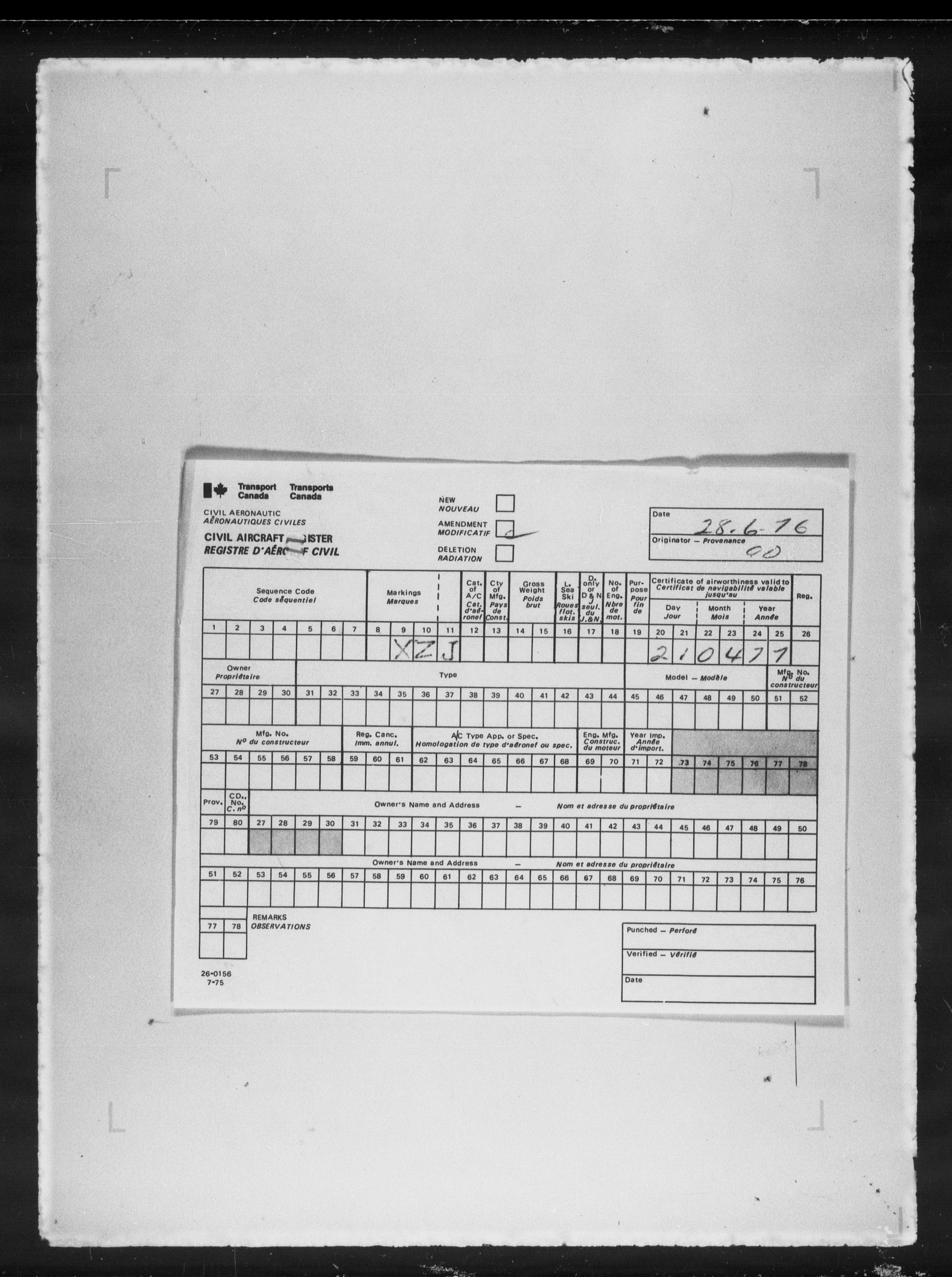 Department of Transport : Civil aircraft registration, inspection and operation files, block 5008, 1920-1986 - 7857
