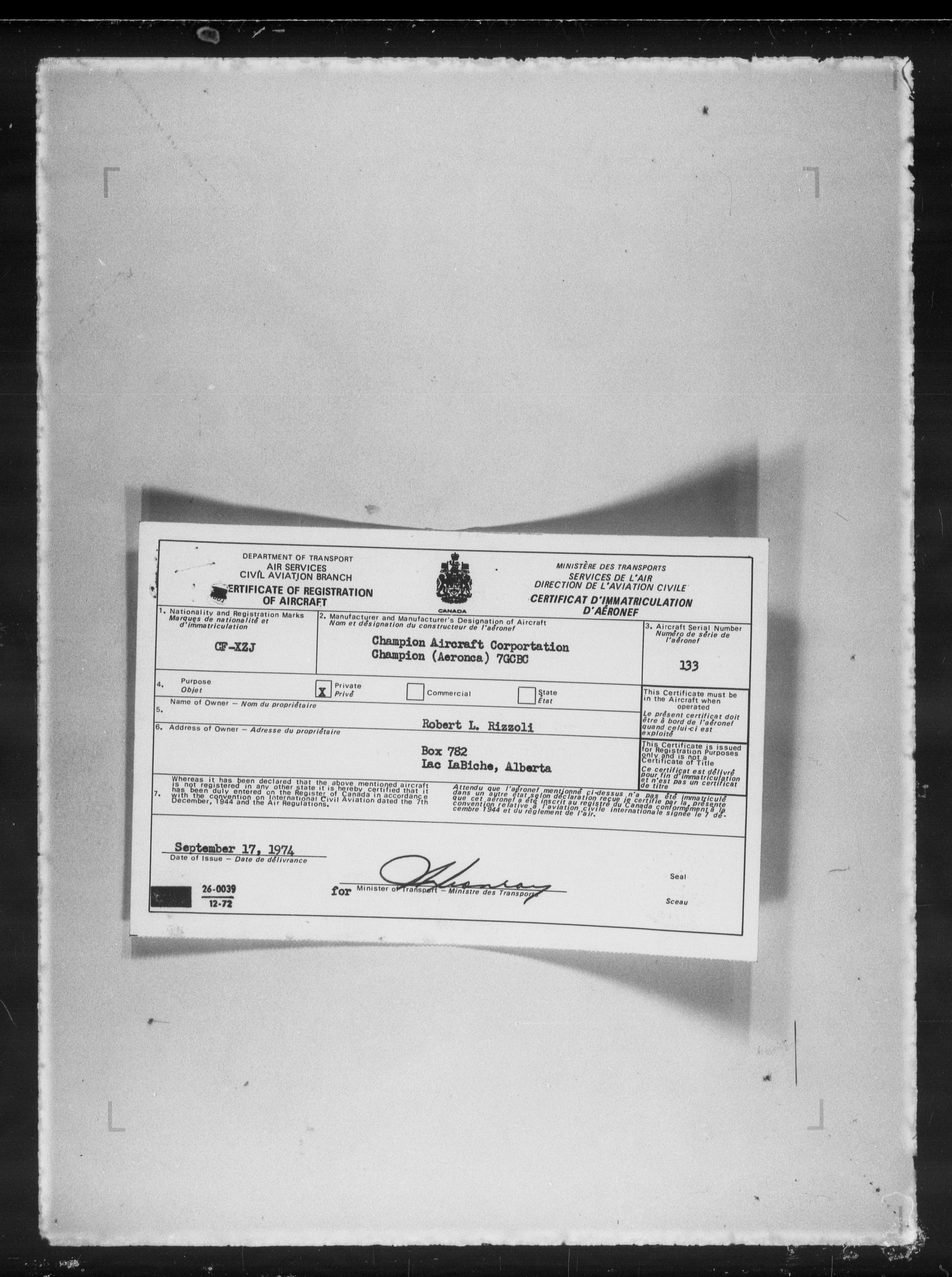 Department of Transport : Civil aircraft registration, inspection and operation files, block 5008, 1920-1986 - 7857