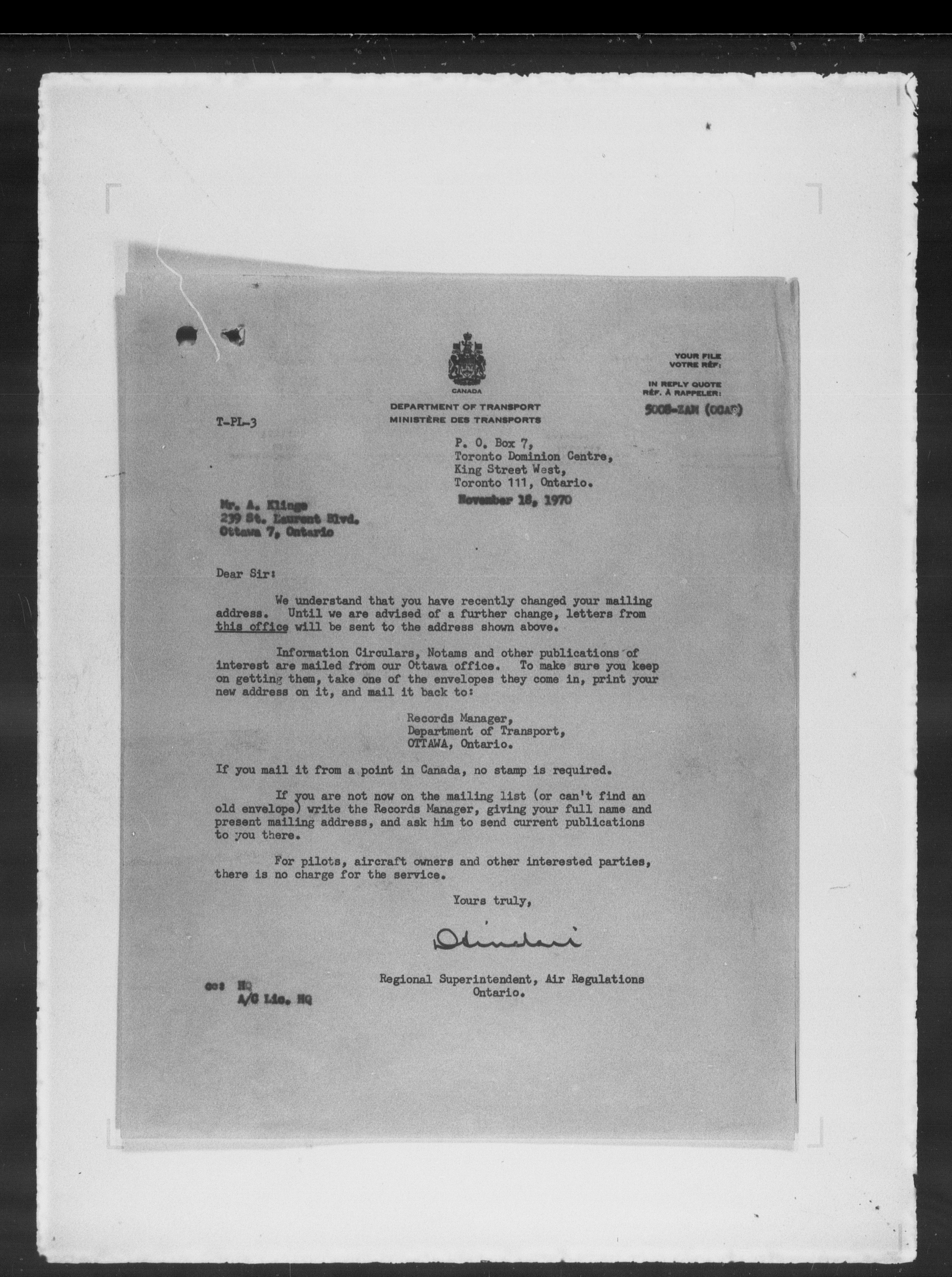 Department of Transport : Civil aircraft registration, inspection and operation files, block 5008, 1920-1986 - 7860
