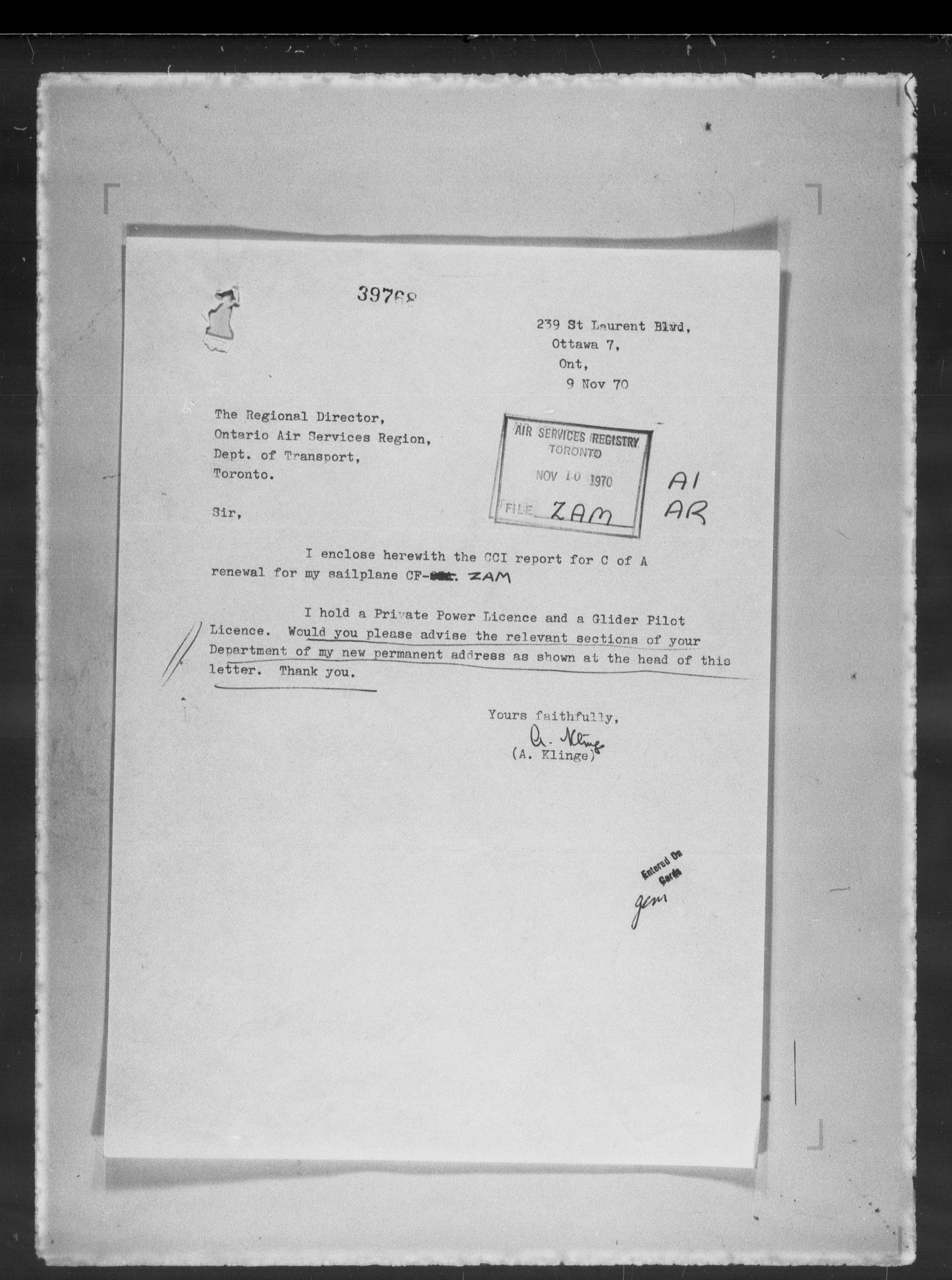 Department of Transport : Civil aircraft registration, inspection and operation files, block 5008, 1920-1986 - 7860