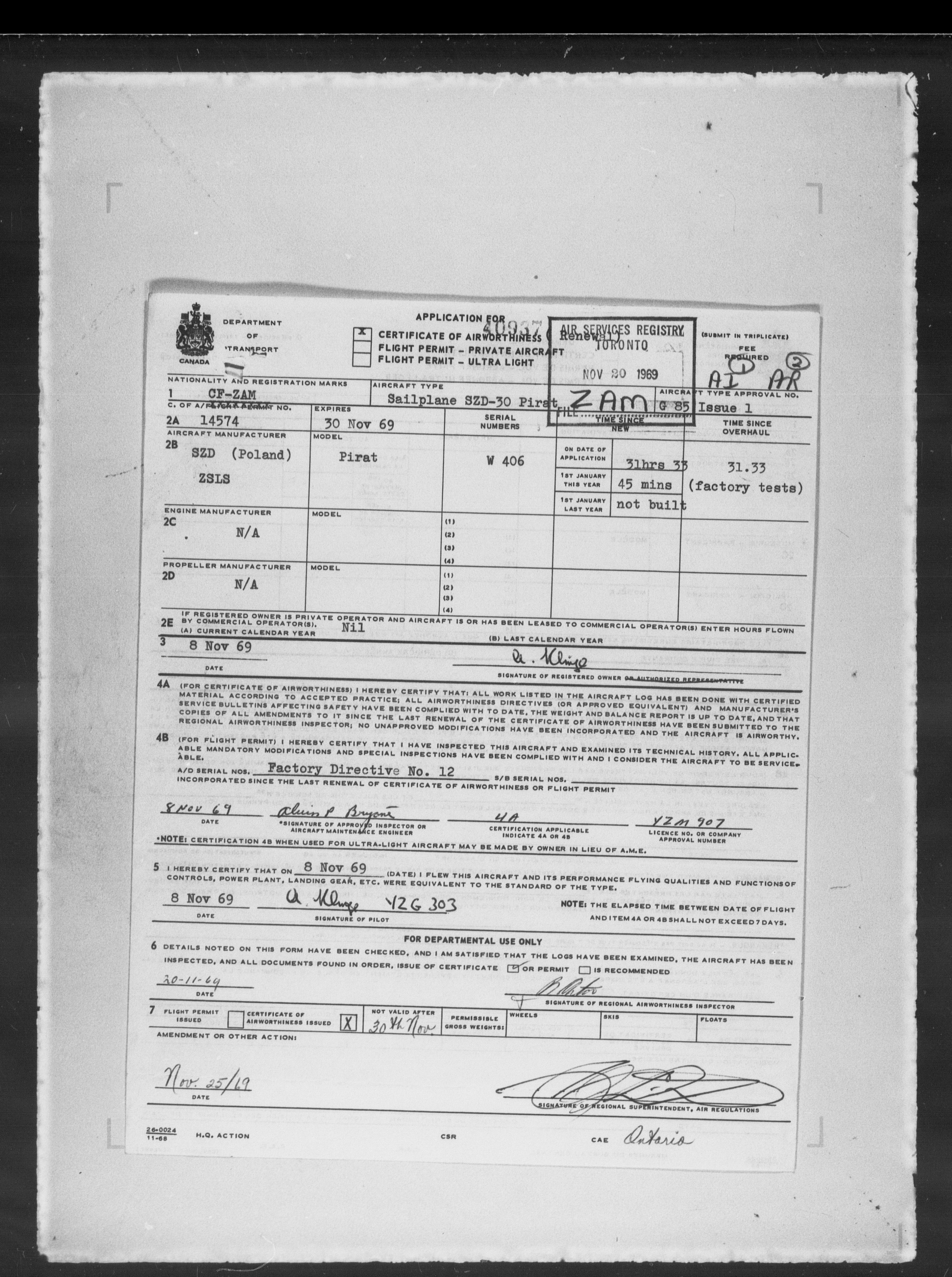 Department of Transport : Civil aircraft registration, inspection and operation files, block 5008, 1920-1986 - 7860