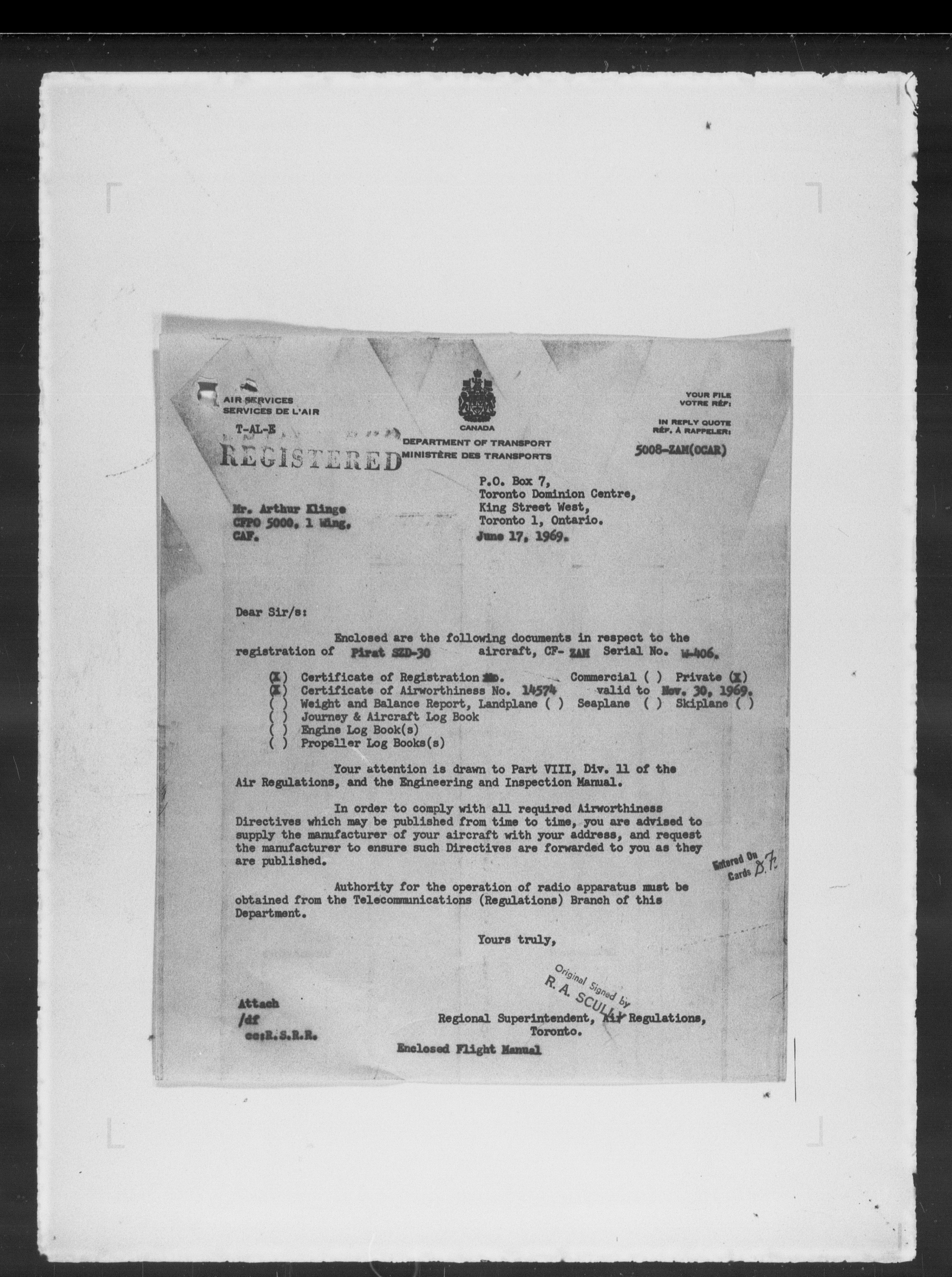 Department of Transport : Civil aircraft registration, inspection and operation files, block 5008, 1920-1986 - 7860