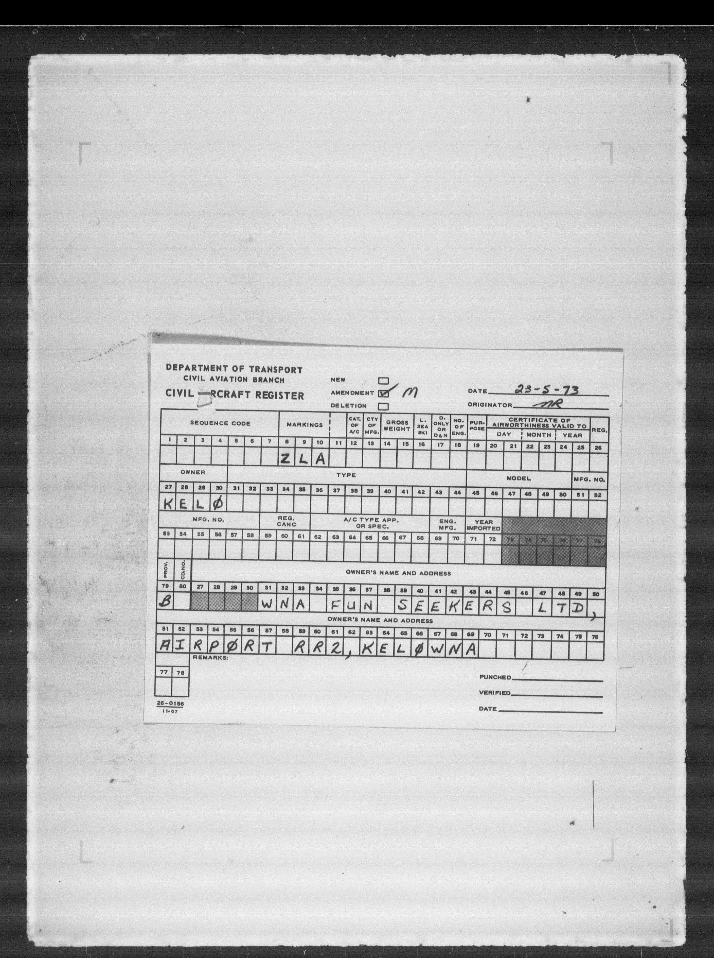 Department of Transport : Civil aircraft registration, inspection and operation files, block 5008, 1920-1986 - 7861