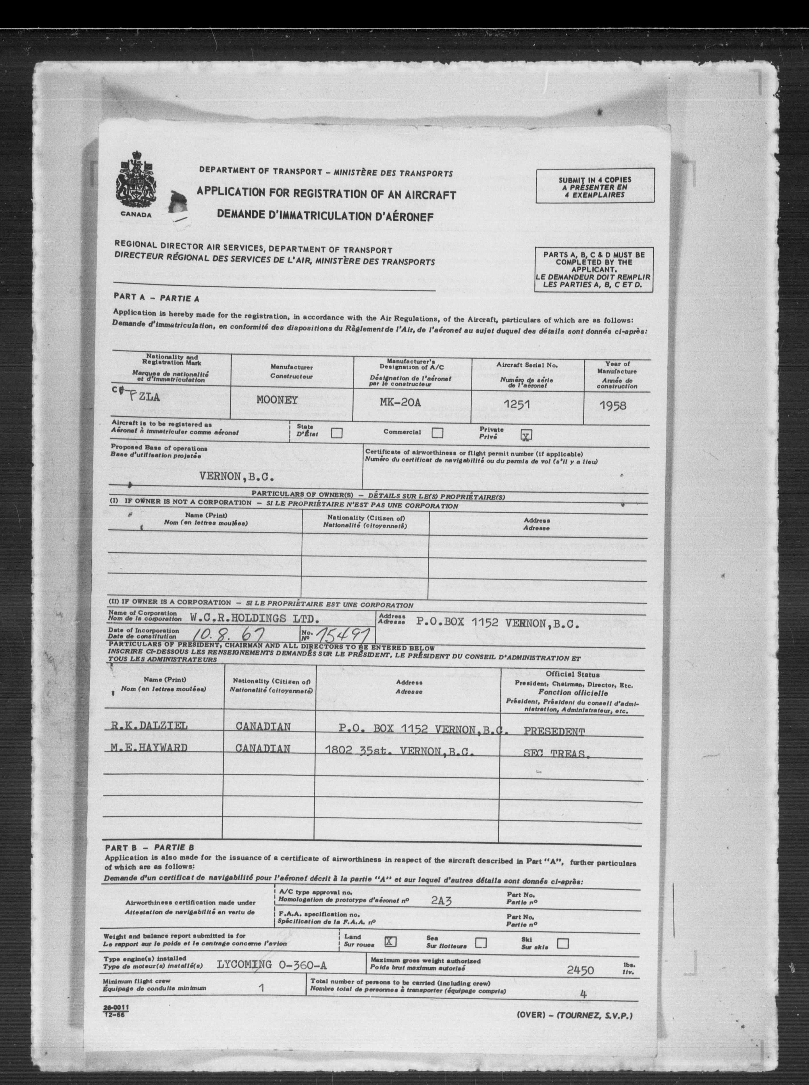 Department of Transport : Civil aircraft registration, inspection and operation files, block 5008, 1920-1986 - 7861