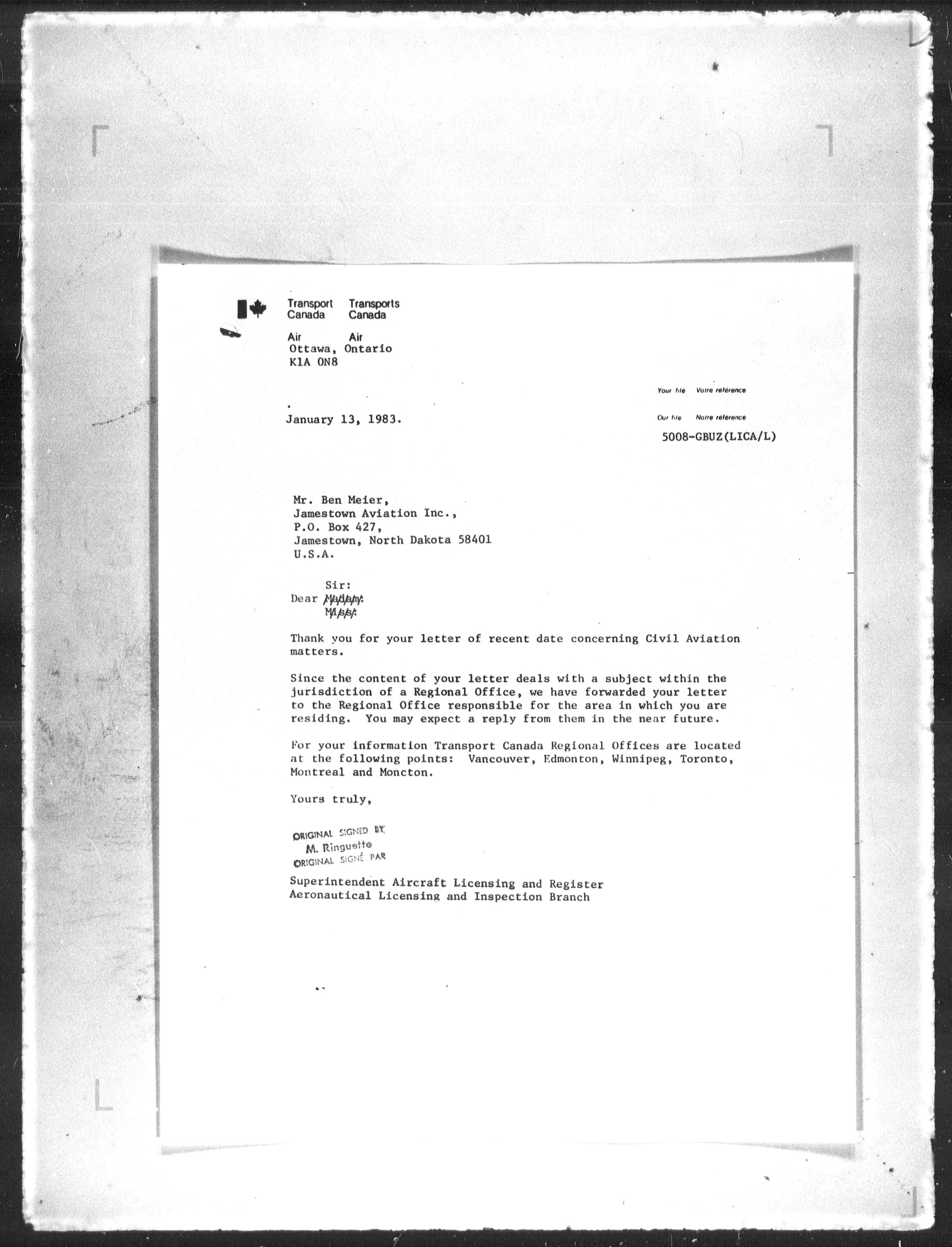 Department of Transport : Civil aircraft registration, inspection and operation files, block 5008, 1920-1986 - 7865