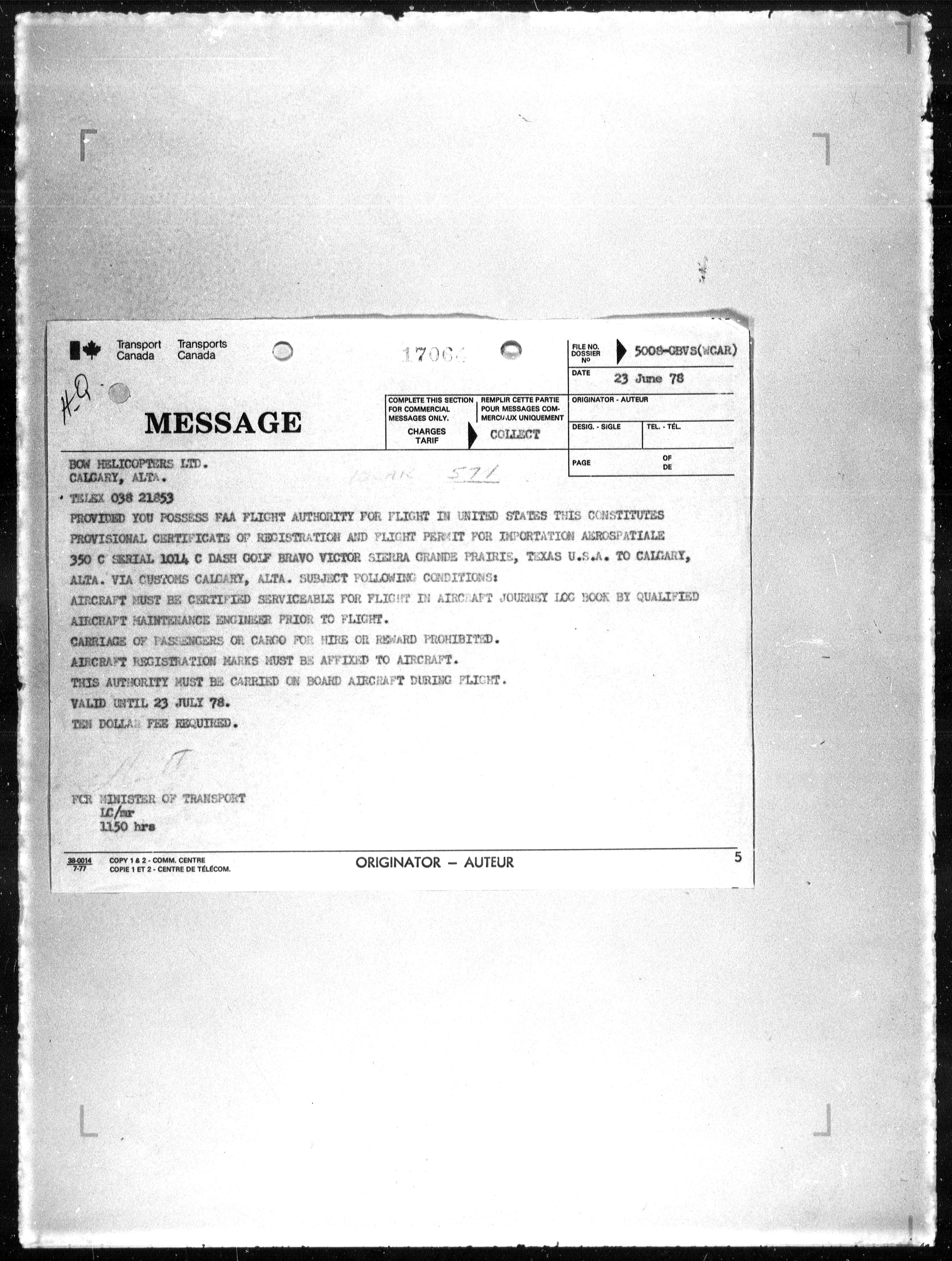 Department of Transport : Civil aircraft registration, inspection and operation files, block 5008, 1920-1986 - 7866