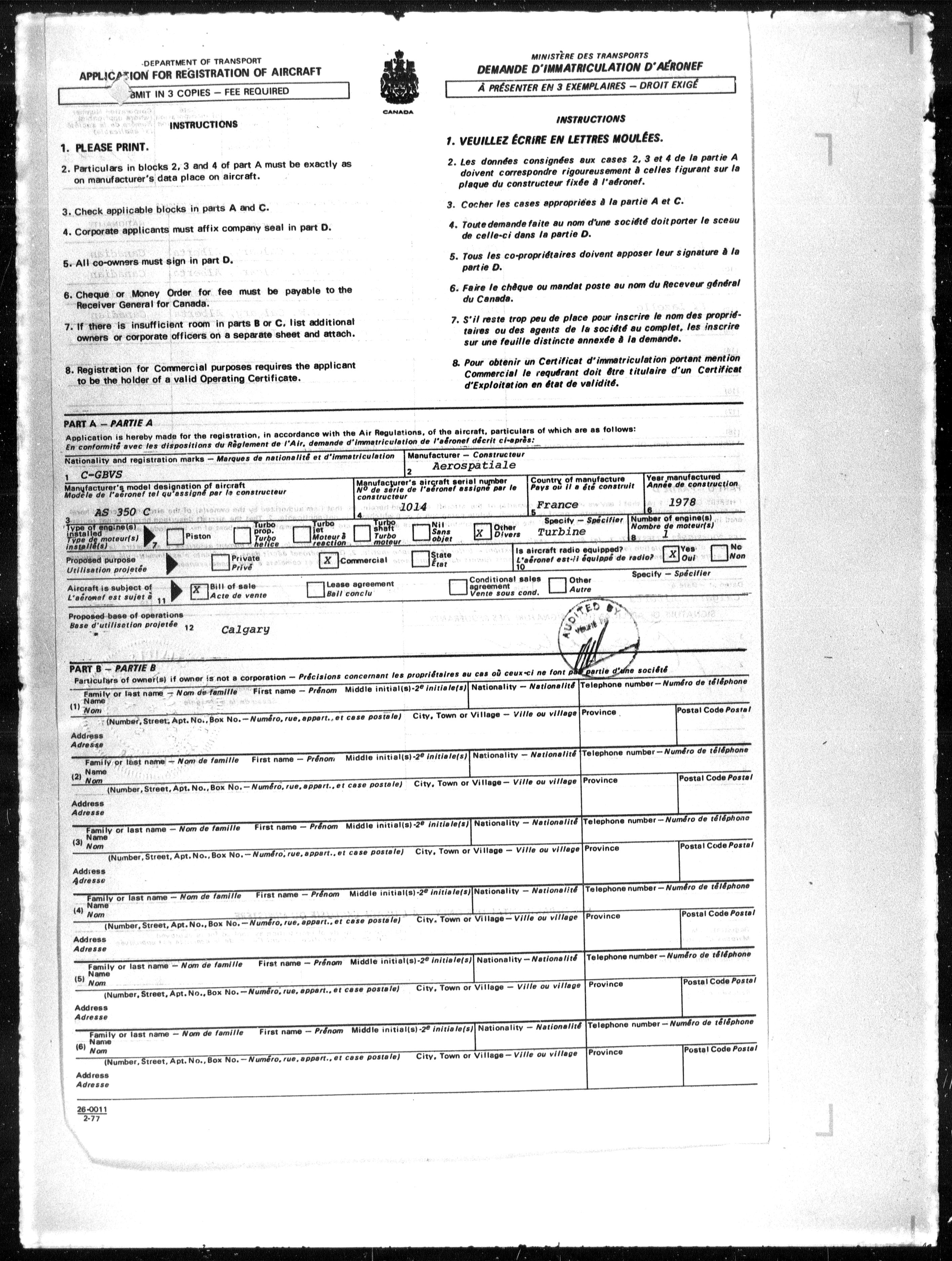 Department of Transport : Civil aircraft registration, inspection and operation files, 1920-1986 : T-7866