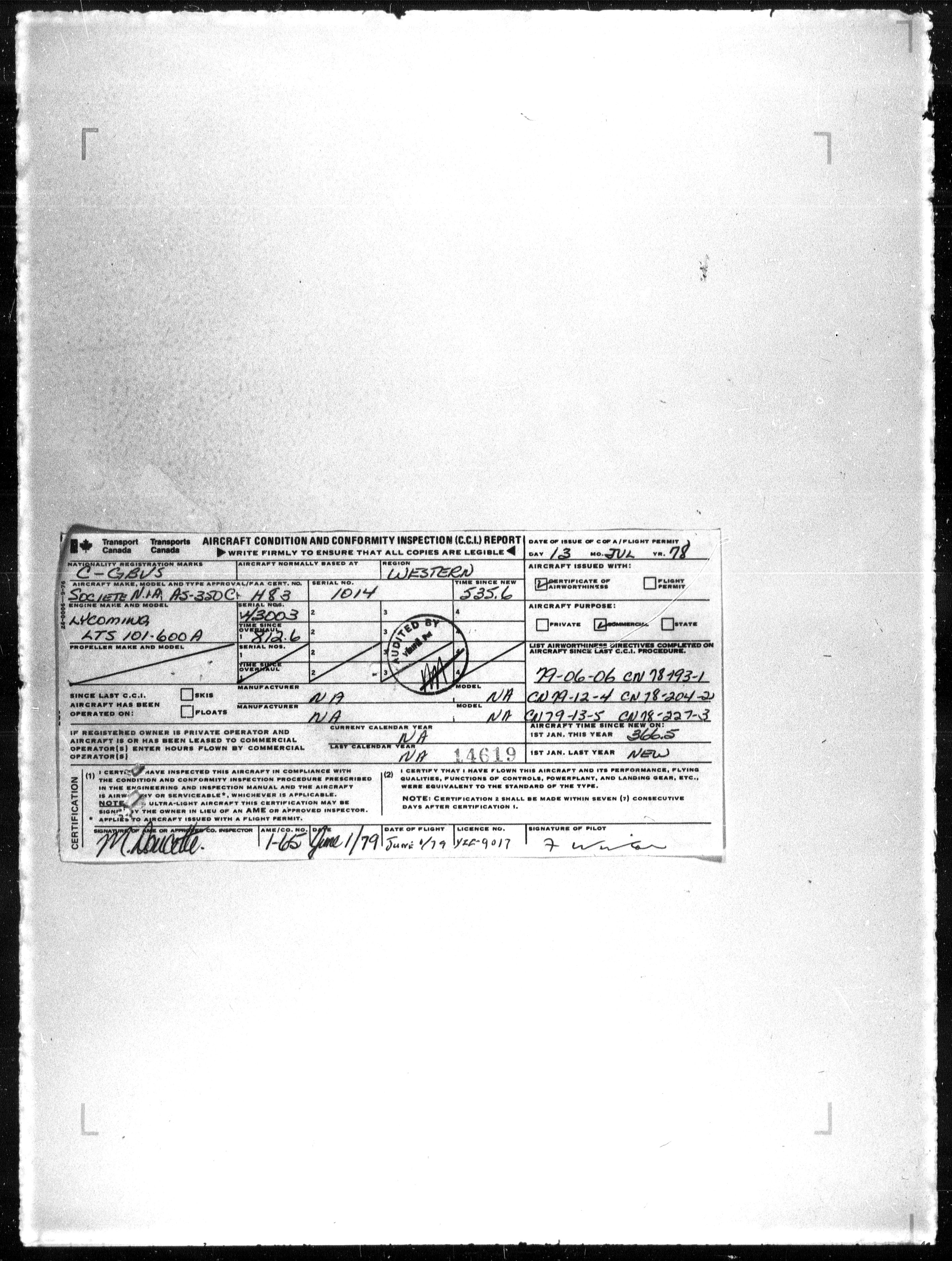 Department of Transport : Civil aircraft registration, inspection and operation files, block 5008, 1920-1986 - 7866
