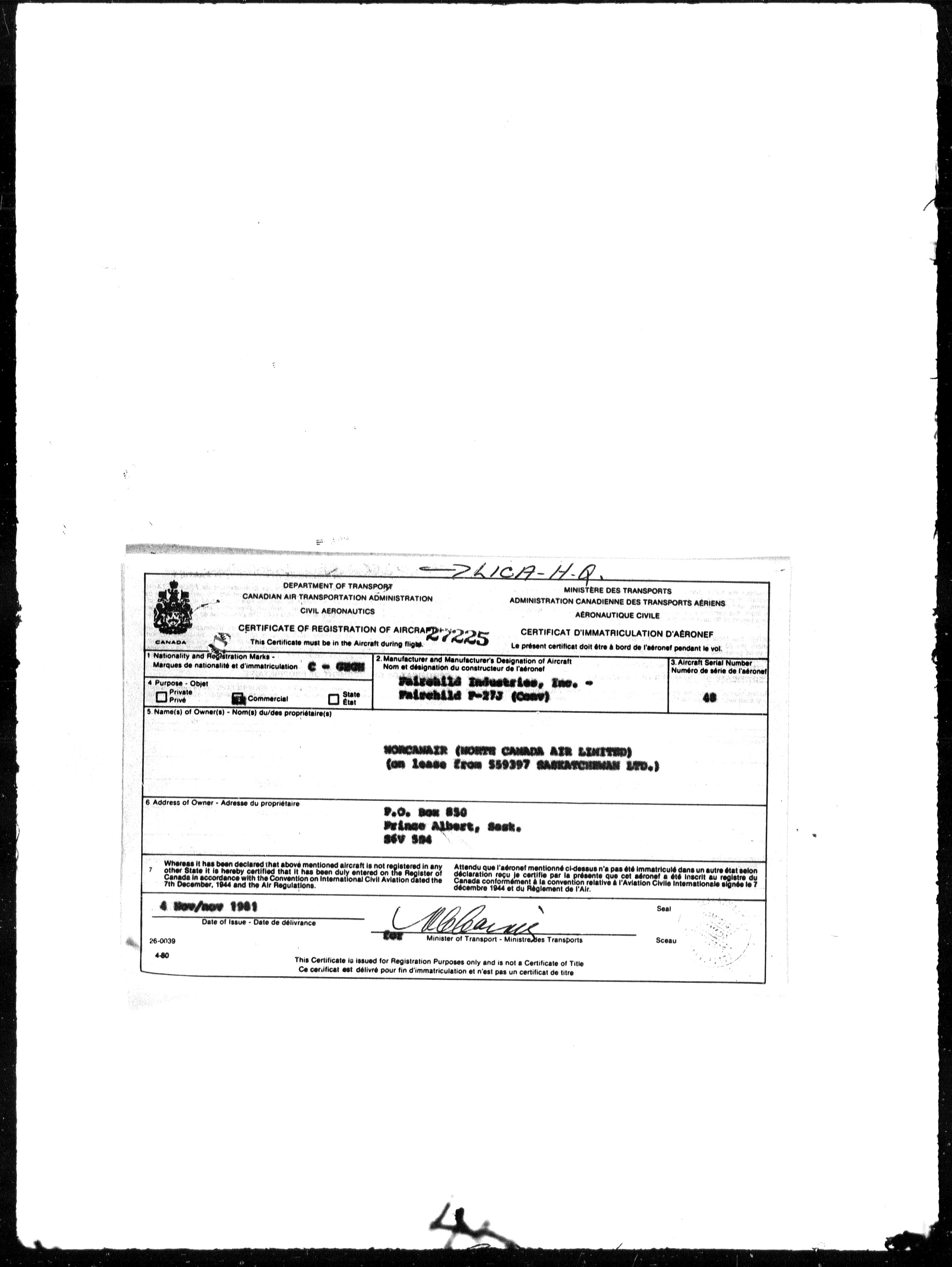 Department of Transport : Civil aircraft registration, inspection and operation files, block 5008, 1920-1986 - 7867