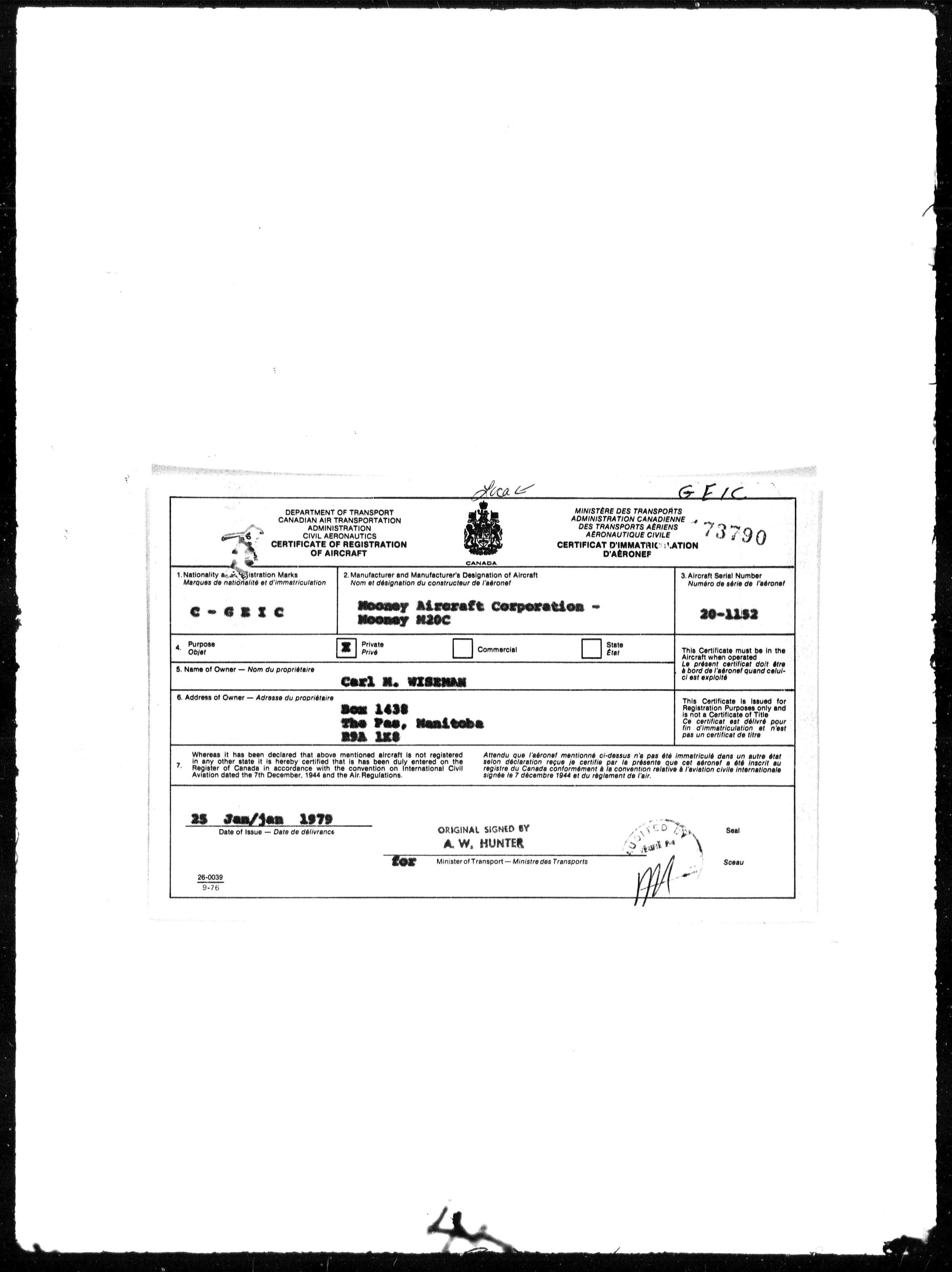Department of Transport : Civil aircraft registration, inspection and operation files, block 5008, 1920-1986 - 7867