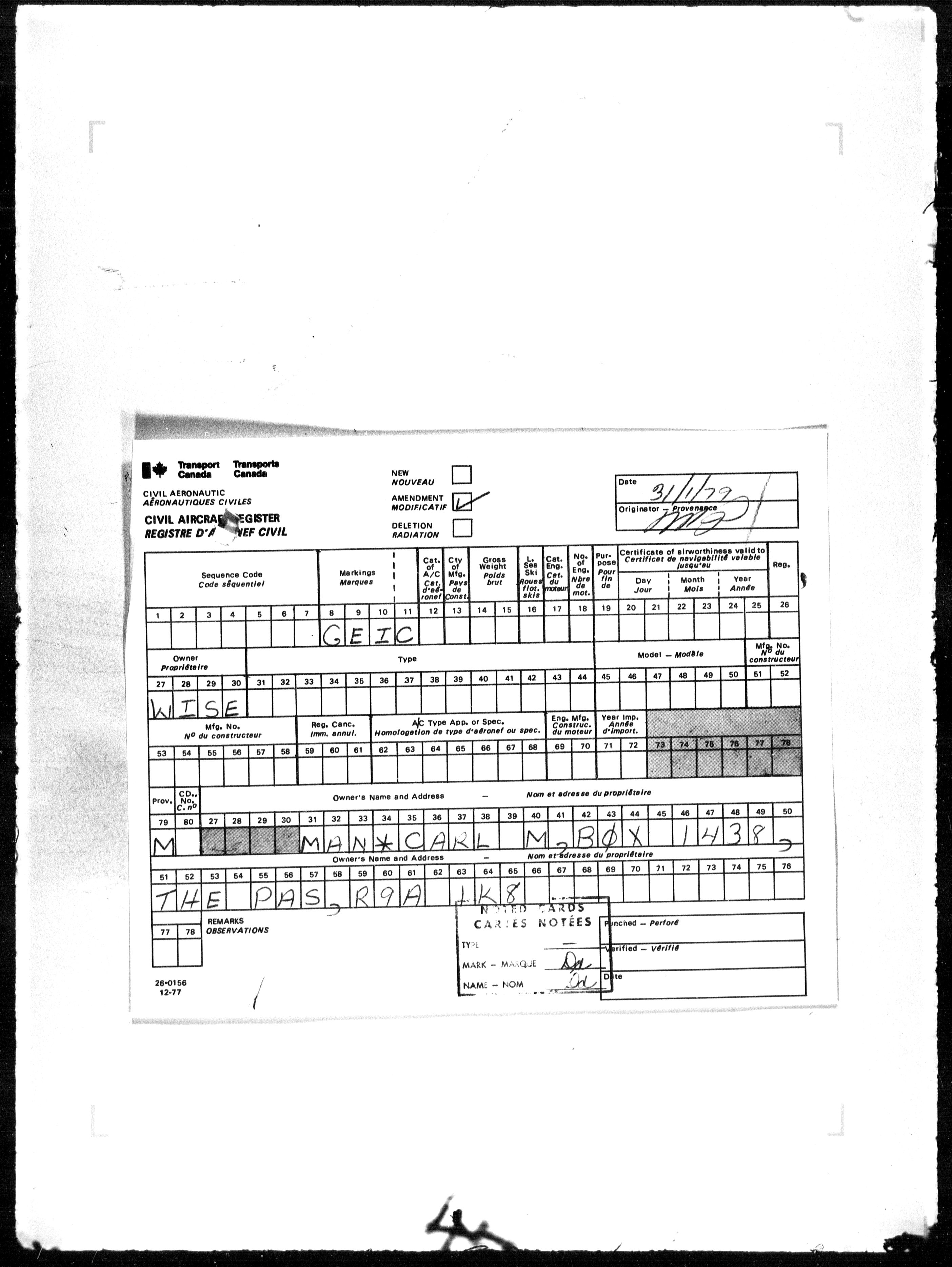 Department of Transport : Civil aircraft registration, inspection and operation files, block 5008, 1920-1986 - 7867