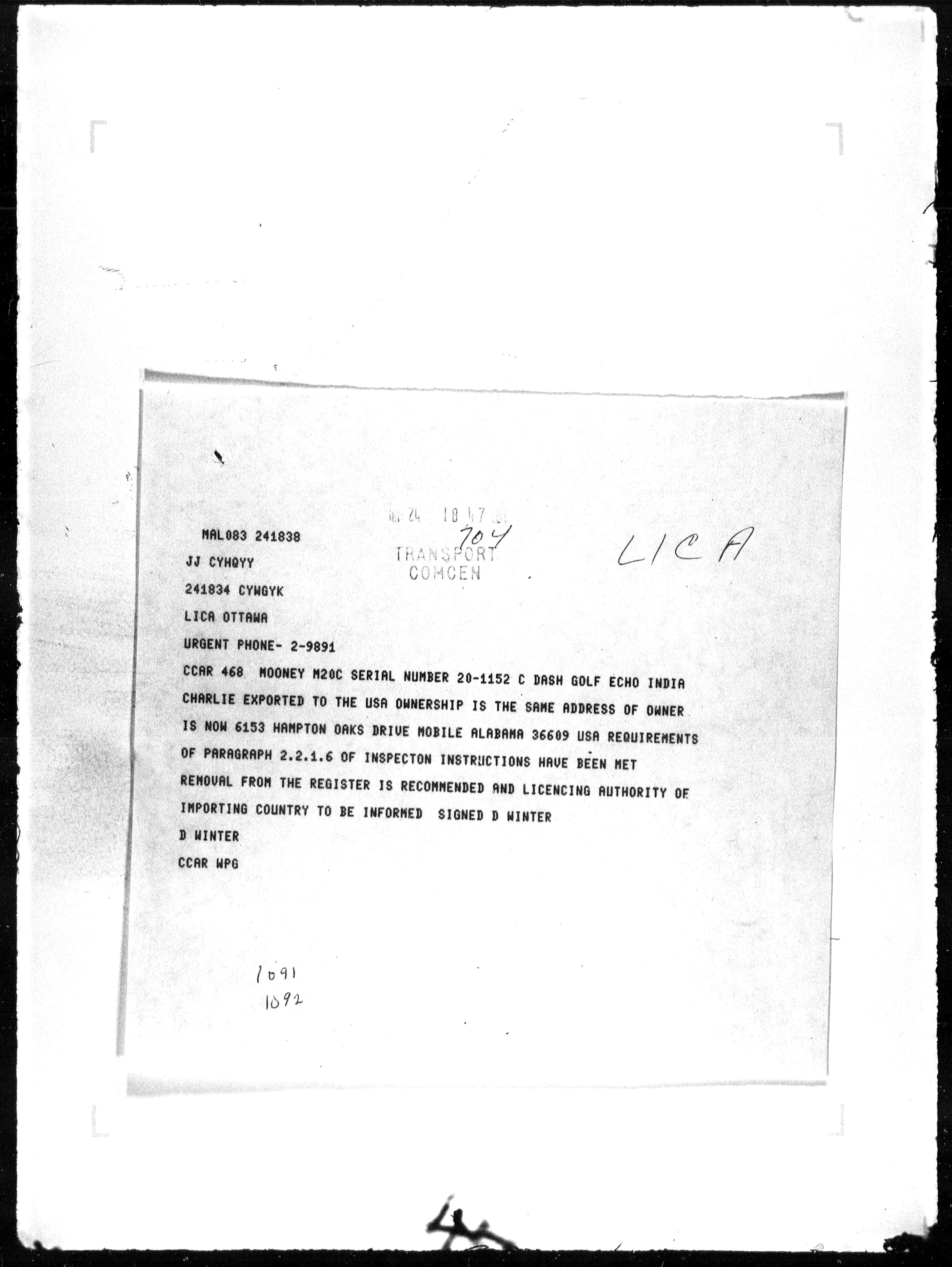 Department of Transport : Civil aircraft registration, inspection and operation files, block 5008, 1920-1986 - 7867